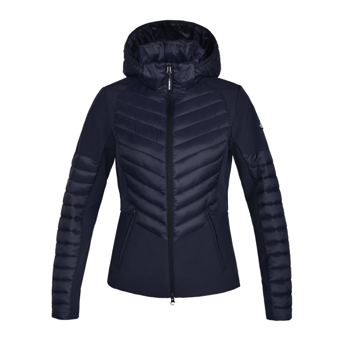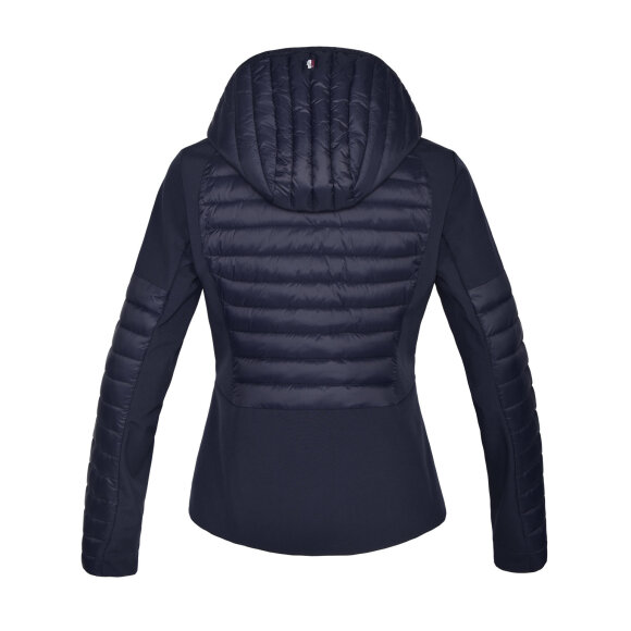 Dame jakke med isolerende paneler og softshell, kombinationen af disse stoffer, gør jakke god til alle slags vejrforhold. Jakke er figursyet med lynlåslommer og 2-vejs lynlås foran. Jakken er med aftagelig hætte. Kingsland logo på ærme og hætte.