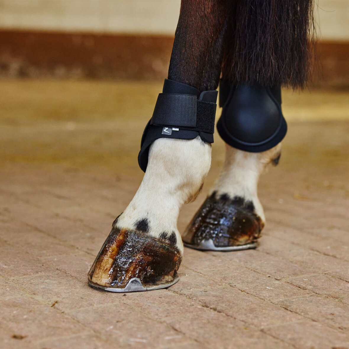 Horze kodegamacher til beskyttelse af hestens bagben. De har en elastisk strop og velcro lukning for en tæt pasform