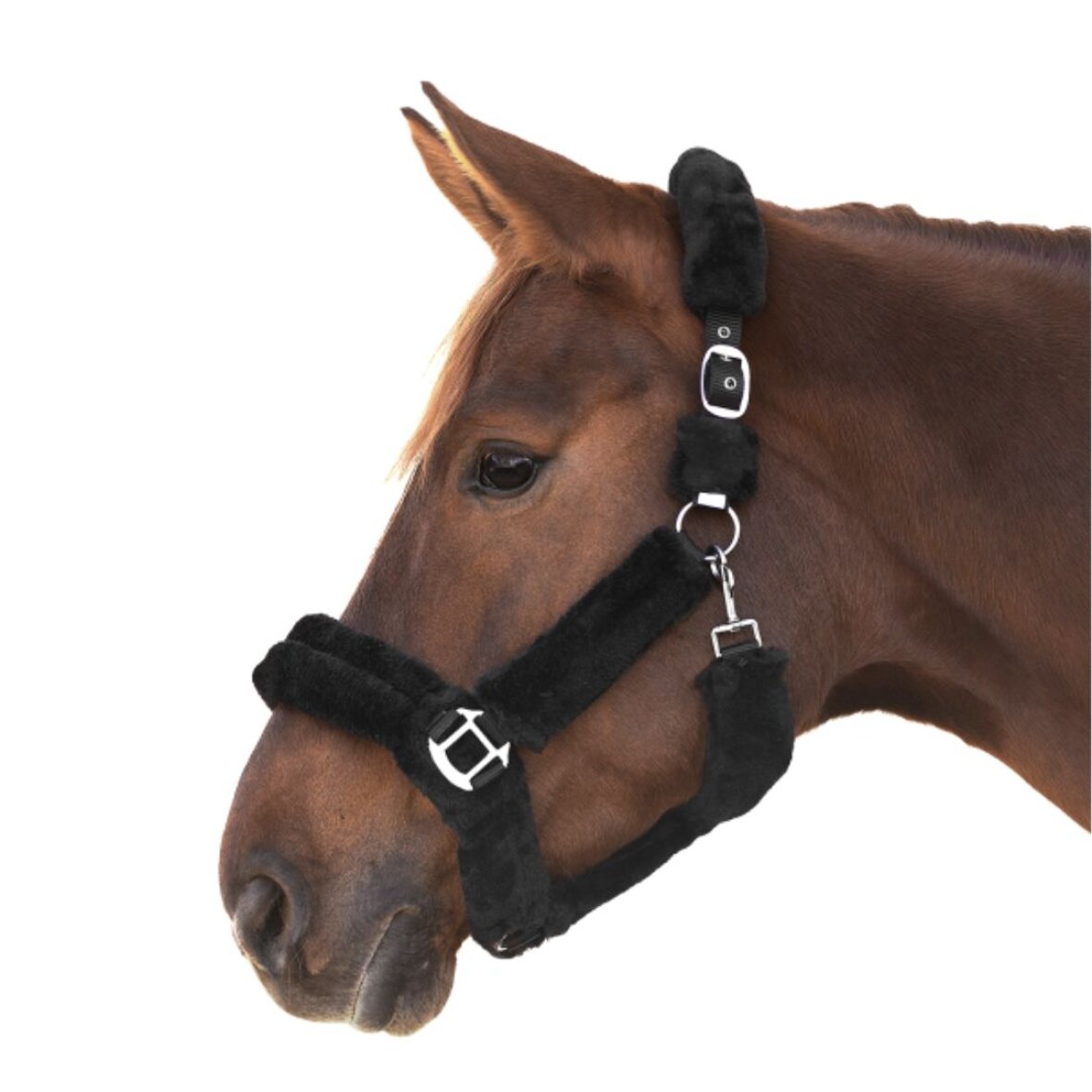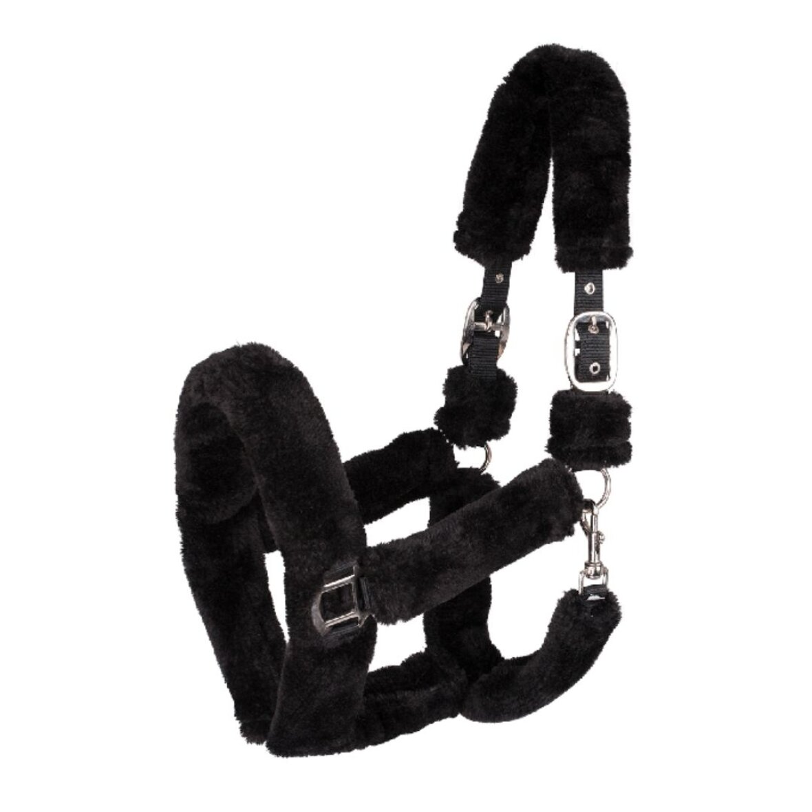 Nylon grime med imiteret pels, grimen kan justeres i størrelse og er med sølv spænder.