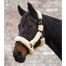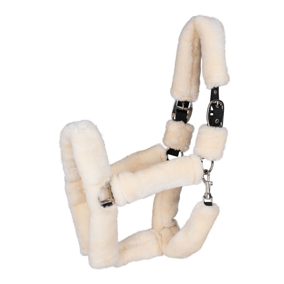Nylon grime med imiteret pels, grimen kan justeres i størrelse og er med sølv spænder.