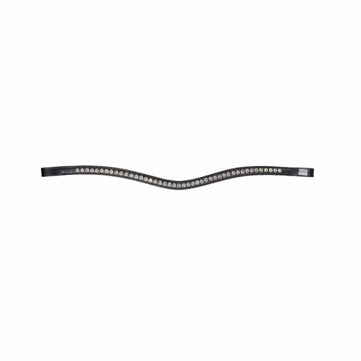 Pandebånd I sort læder med krystaller. Pandebåndet er flot formet i en bue.