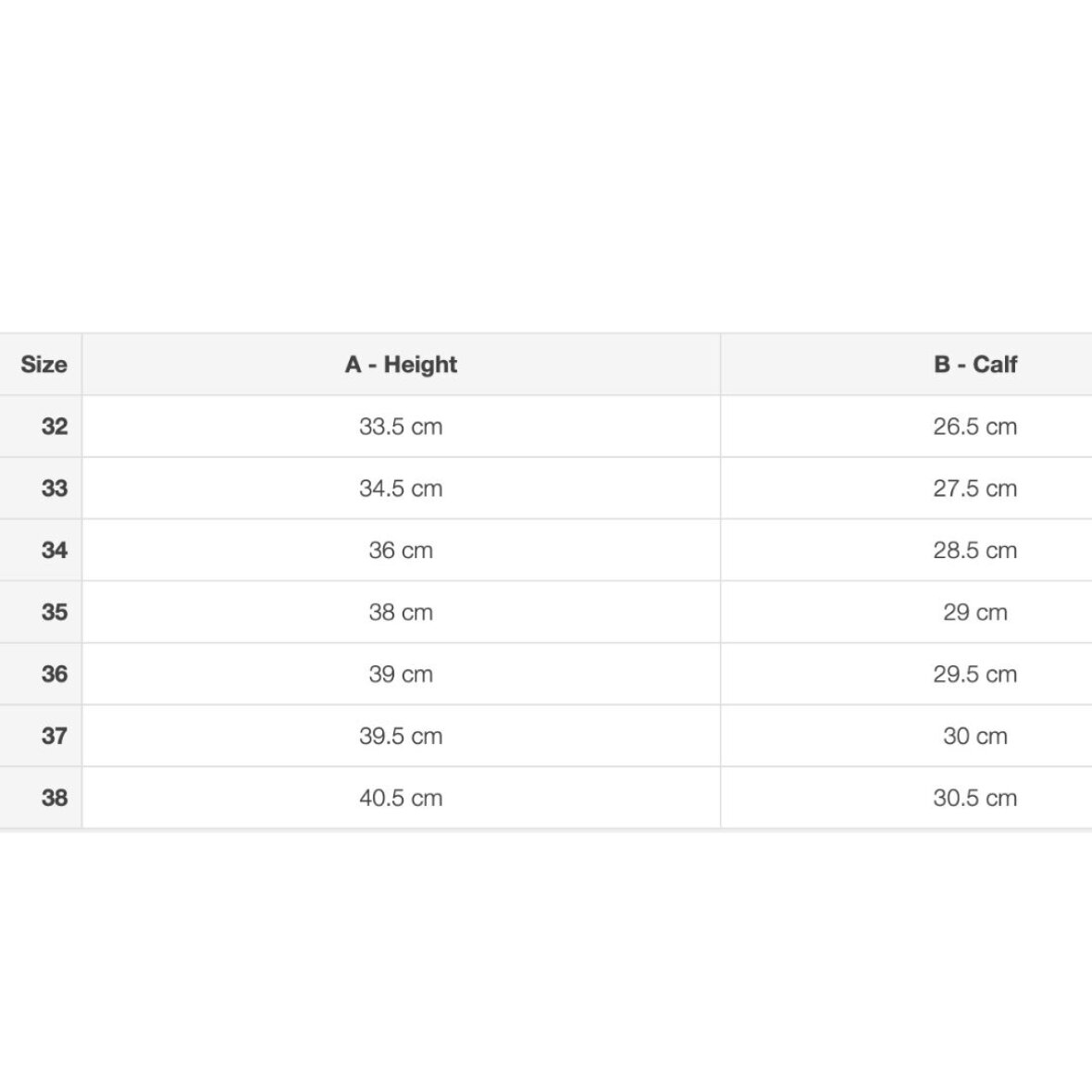 Det er vigtigt at alle målinger til lange ridestøvler gøres i siddende stilling. Alle størrelser i guiden er målt på kroppen, og ikke på selve støvlen.