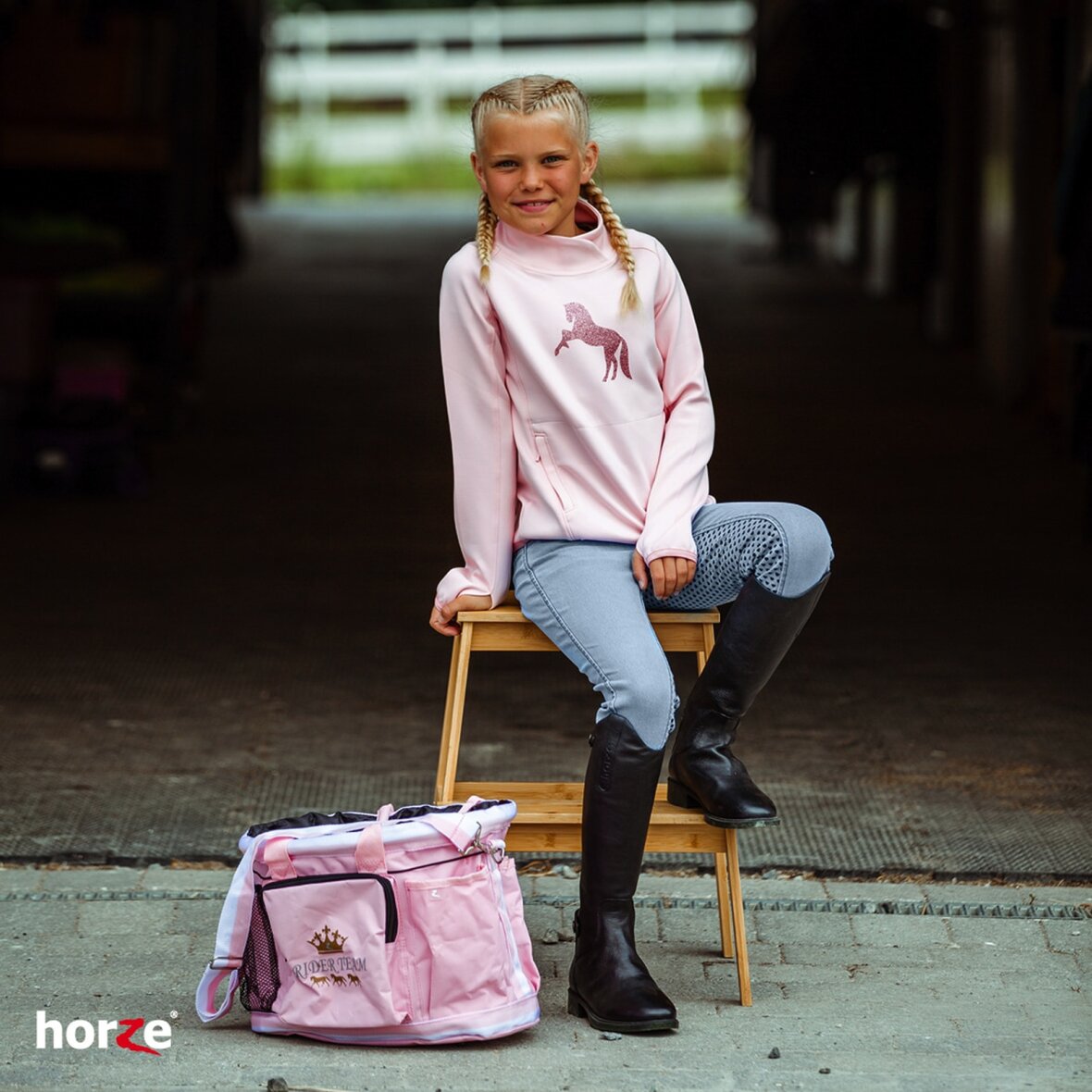 Klassiske børne ridestøvler fra Horze. Det glatte argentinske læder er blødt og vil blive behageligere for hver gang. Meshforingen er åndbar og forhindre fødderne i at overophede. Præget læder indvendig på ben giver fremragende grip og den Horze--mærkede sål er ekstrem solid. En lynlås i fuld længde bagpå og elastik langs lynlåsen giver perfekt pasform. En læderstrop med trykknap øverst og nederst på lynlåsen, holder støvlen sikkert lukket. Et lille, blankt Z-logo i metal pryder lægstroppen og er et perfekt finish.