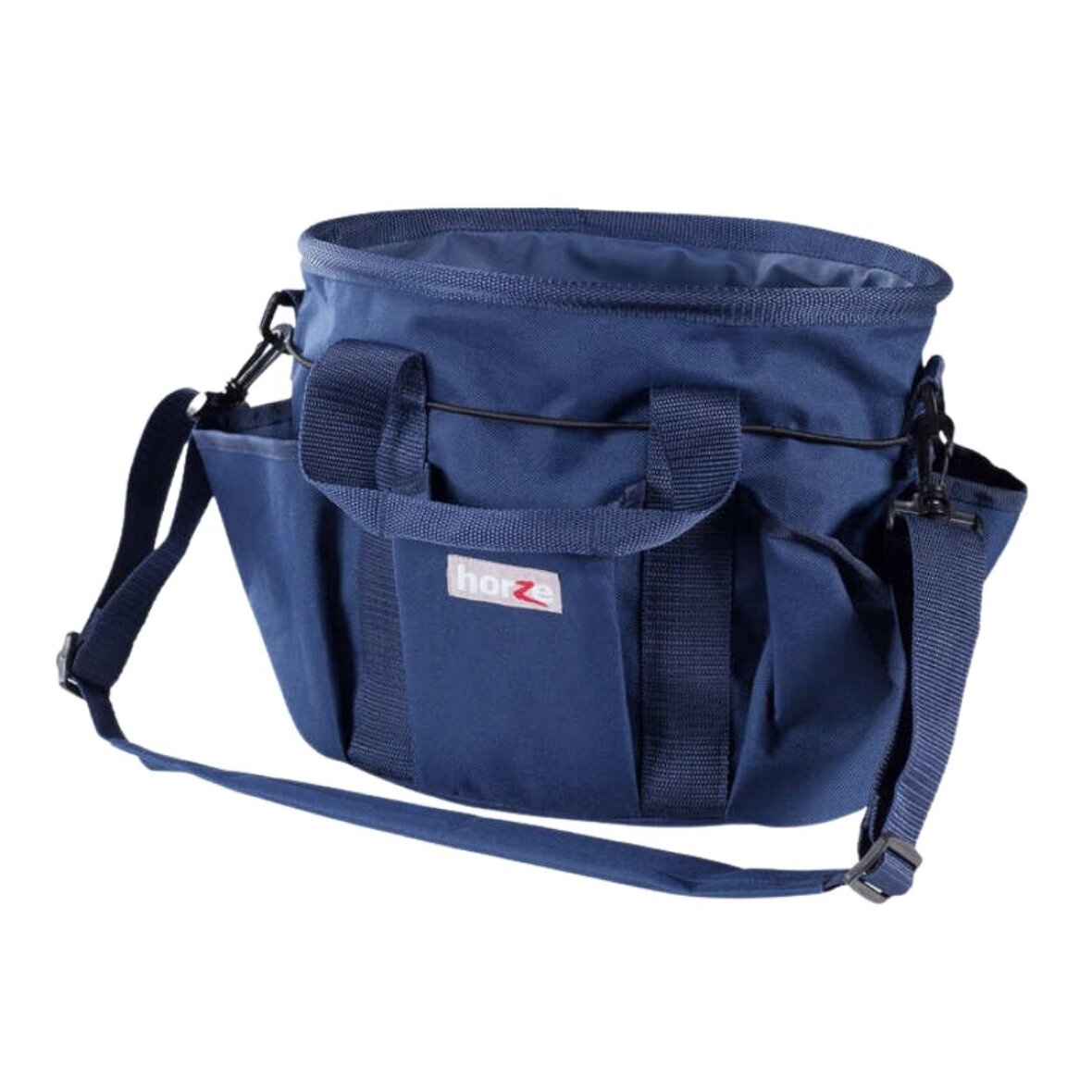 Smart strigletake fra Horze, som er fremstillet af solidt materiale. Strigletasken er med et stort indvendig rum og mange små lommer, til alle dine ting. Den tynde elastik snor rundt om strigletasken, holder på flasker og høje ting i de små rum. Justerbar og aftagelig skulderrem samt robuste håndtag, gør det nemt at have strigletasken med. Horze logo på fronten af tasken.