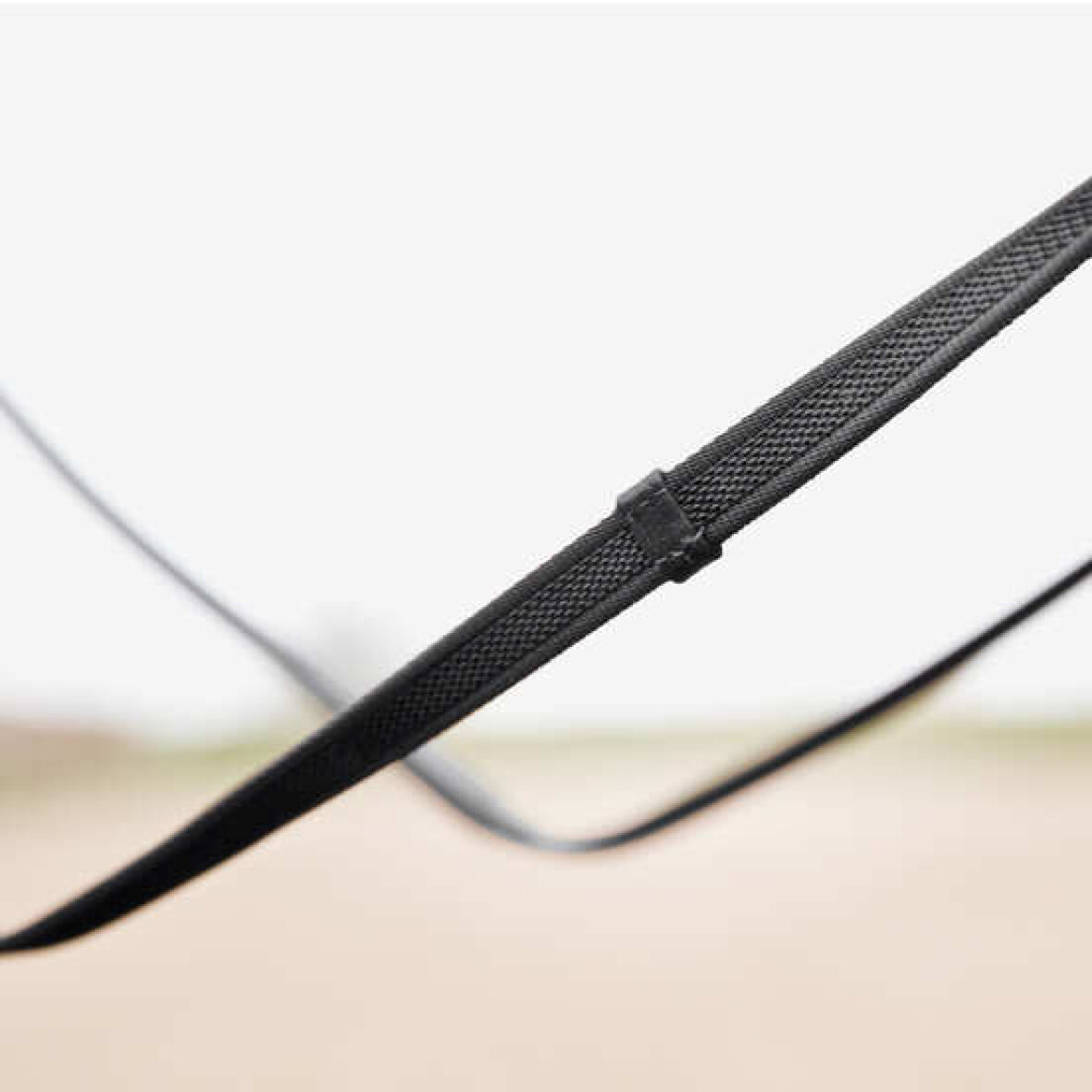Holdbare og attraktive tøjler fra Horze. Disse gummibelagte sammenflettede tøjler lægger godt i hånden da de er 5/8" smalle og er med spænder i rustfrit stål.