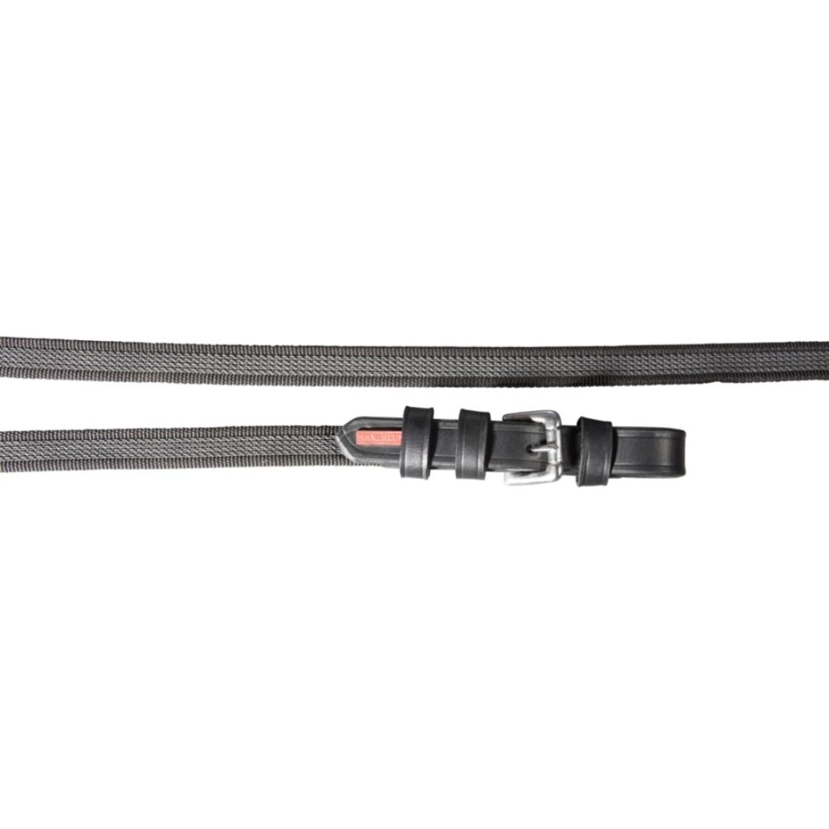 Smal tøjle med gummi-vævning fra Karlslund. Tøjlen er stærk og er med metal spænder i chrom.
