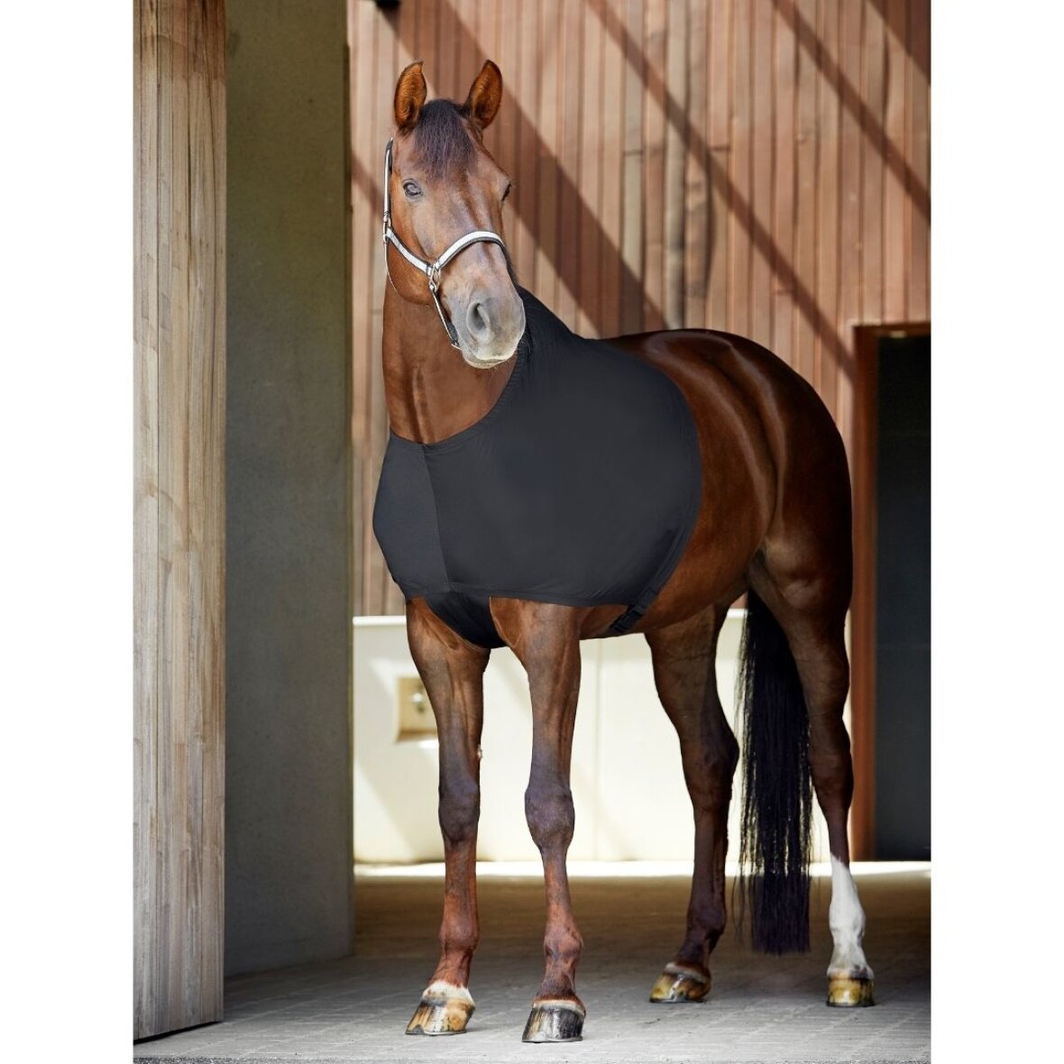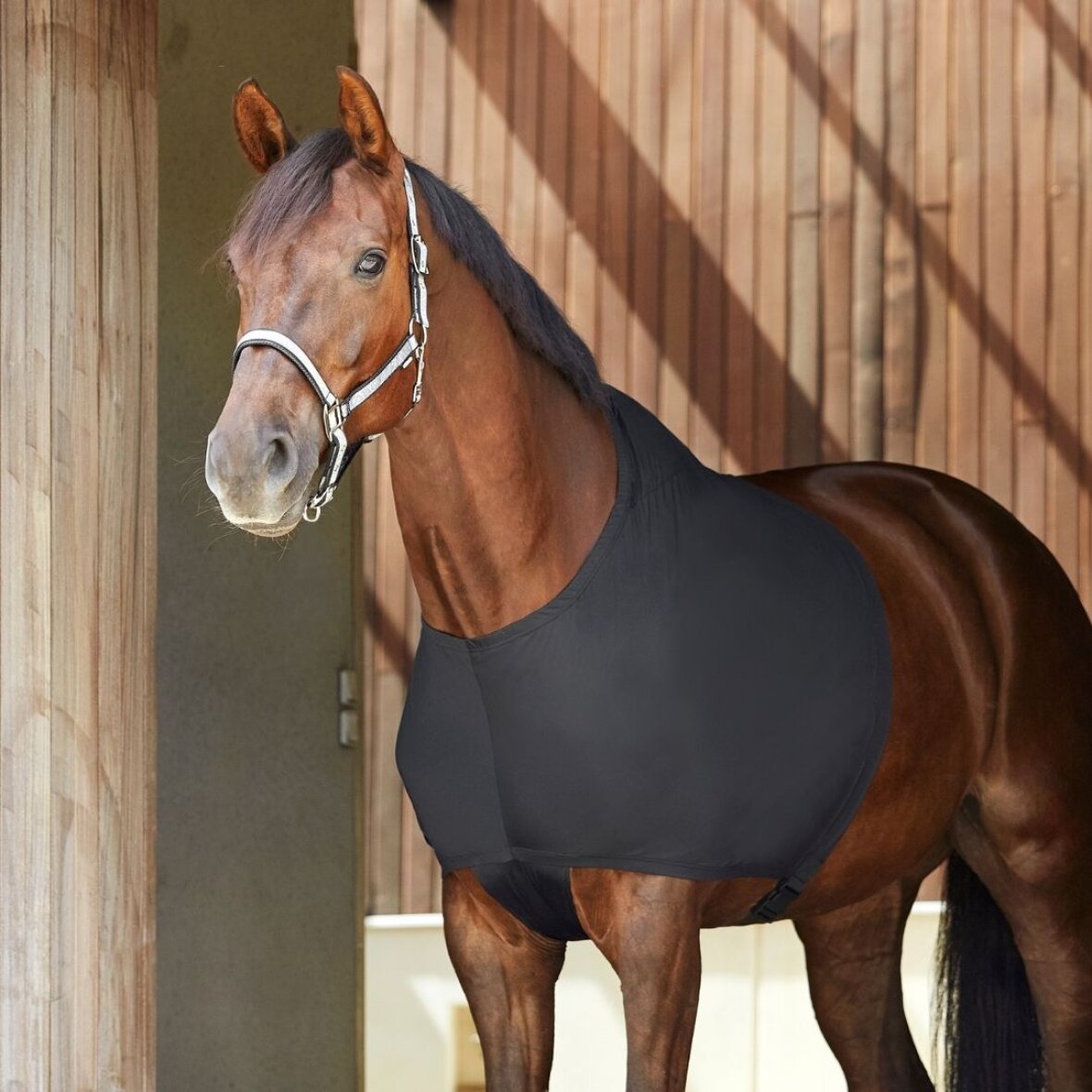 Fir-Tech dækkenunderstøje er fremstillet i et blødt og stretchy materiale, som beskytter din hest mod slidmærker fra dækkenet. Undertrøjen har indvævede keramiske partikler, som reflekterer hestens egen kropsvarme, hvilket resulterer i øget blodgennemstrømning, spændinger i hesten skulderparti afhjælpes og musklerne holdes bløde og fleksible. Ved hestens manke har denne undertrøje, som noget helt nyt, en trykaflastende pude af memory foam, som yder ekstra beskyttelse for hesten på et sårbart punkt.