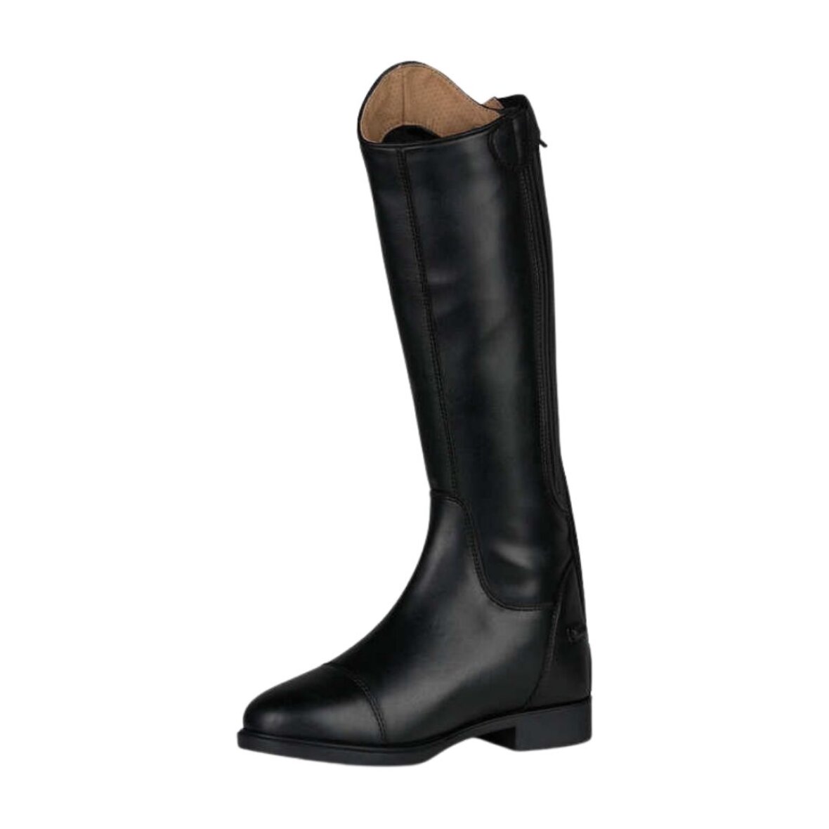 Dressur ridestøvler til børn, som ligner ægte læder! Ridestøvlen er fremstillet i syntetisk læder med meshforing som er meget åndbar. Lynlås bagpå, for hurtig at få støvlen af og op, samt elastik i læggen for bedre pasform, de lukkes øverst med trykknap. Ridestøvlen er med sporerholder og en eco-rider sål, som gør at støvlen er behagelig at have på.