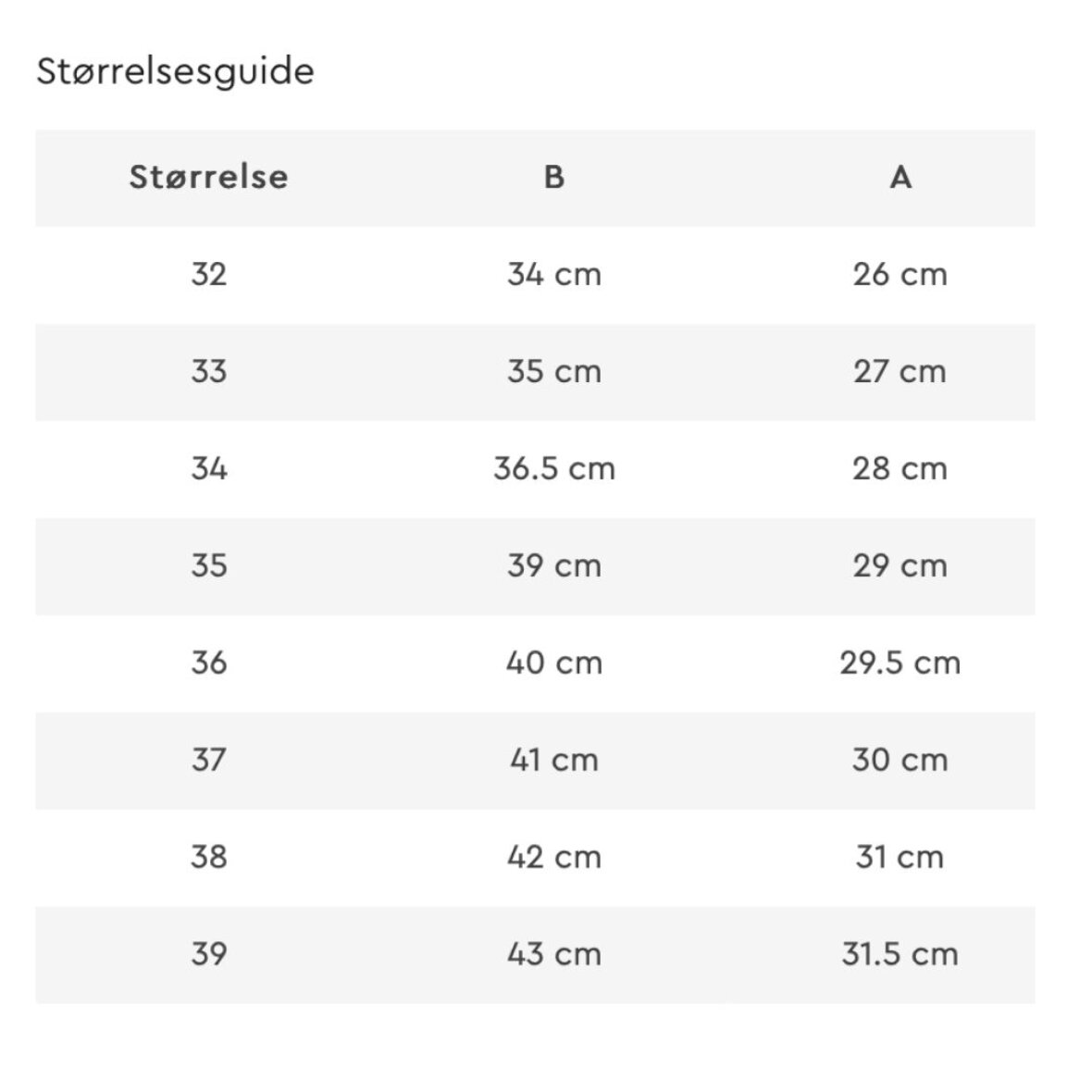 Størrelser på lager