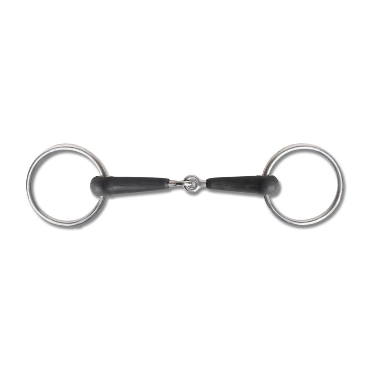 2-delt gummibelagt trensebid med løse ringe. Gummibid er velegnet til sensitive heste, da det er skånsomt for hestens mund og kan medvirke til en bedre spytproduktion.