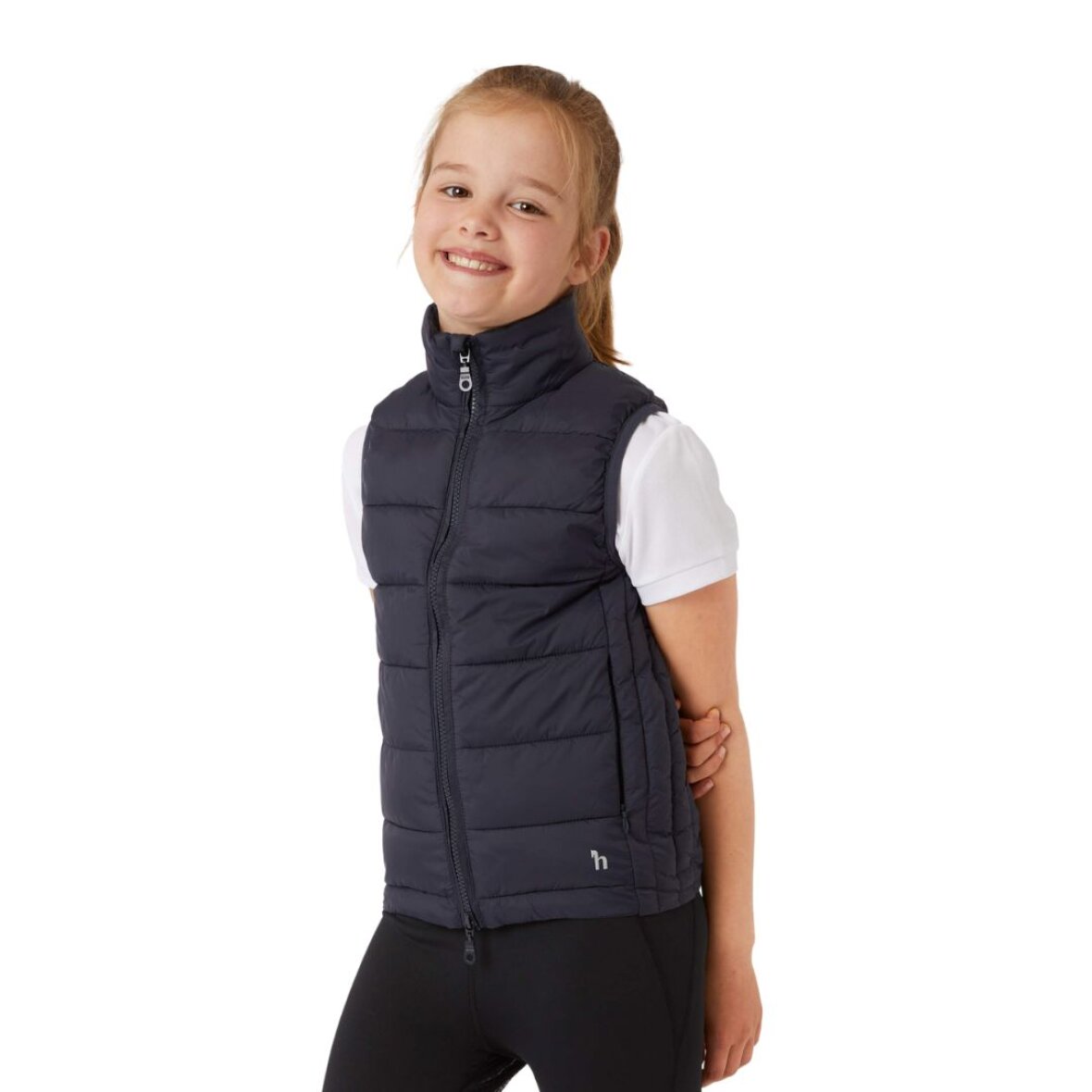 Polstret letvægts vest til børn. Vesten er vatteret og med 2-vej lynlås foran samt to front lynlåslommer. Vesten er med Horze logo ved venstre lomme.