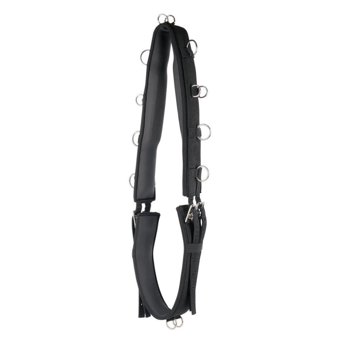 Longegjord med neopren foring fra Harrys Horse. Gjorden er med 12 ringe, hvoraf de 2 er placeret på undersiden. Gjorden kan justeres i størrelse i begger sider.