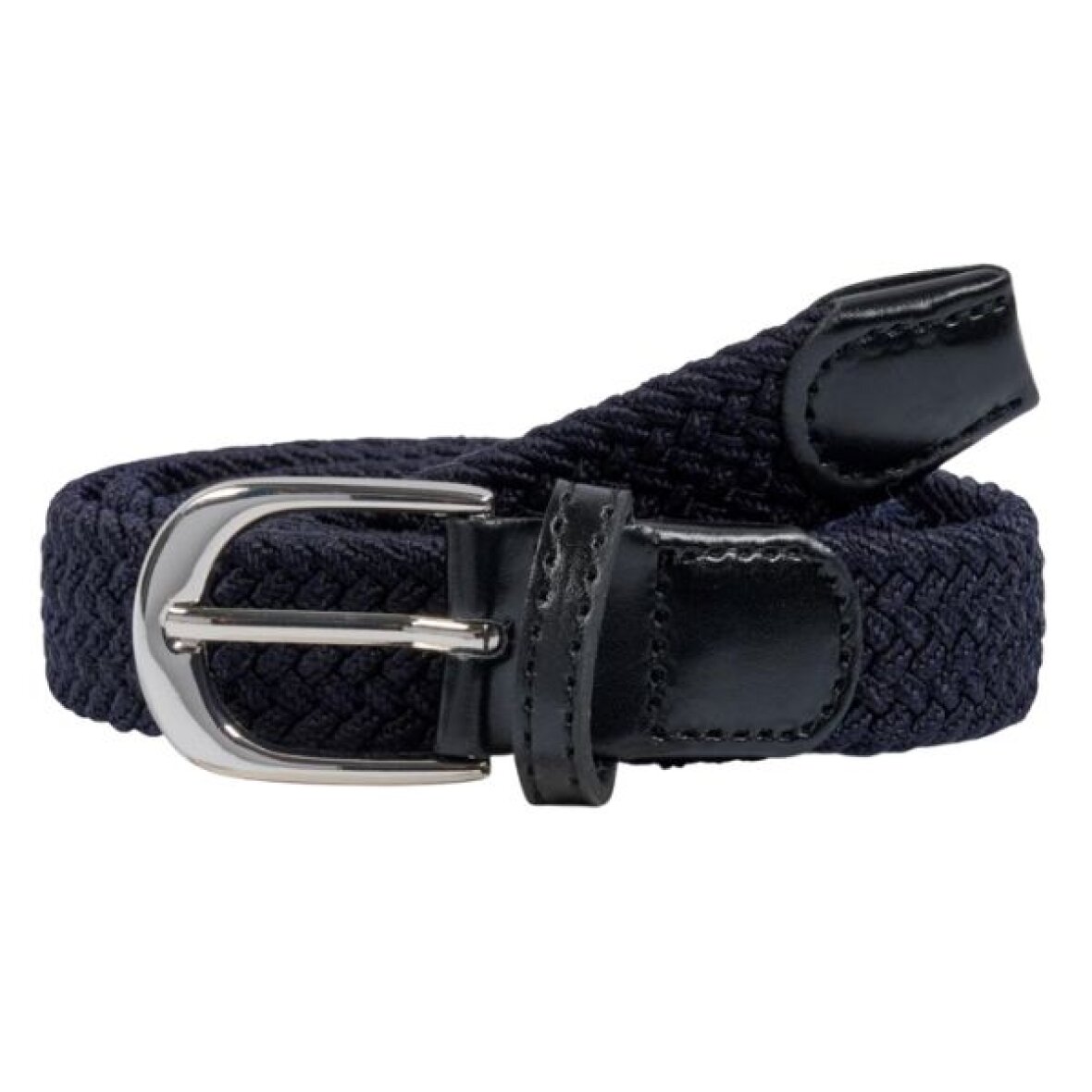 Elastik bælte til børn i navy med læder ender og sølv spænde.