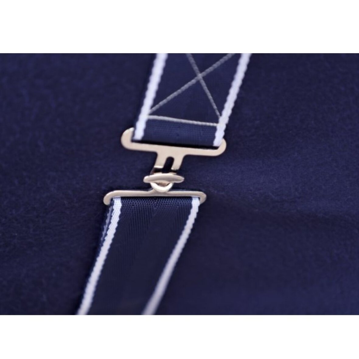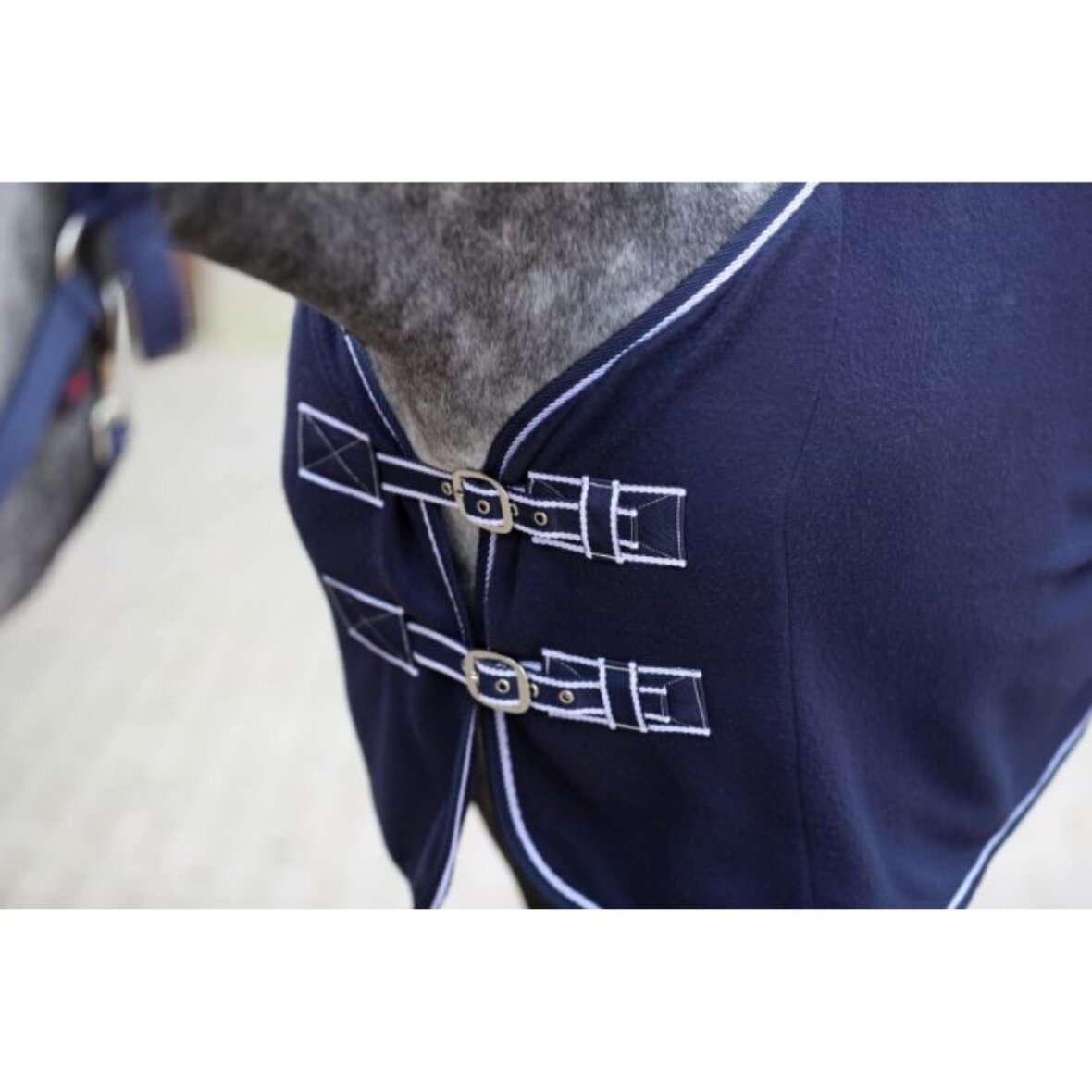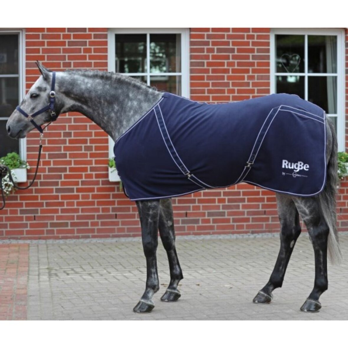 Fleecedækken fremstillet i micro-fleece som er fugttransporterende og svedabsorberende. Dækkenet er med dobbelt bringelukning, krydsgjorde under maven og halerem som holder det på plads. Ekstra fleecepolstring ved manen, for at forhindre tryk. RugBe logo på ene side.