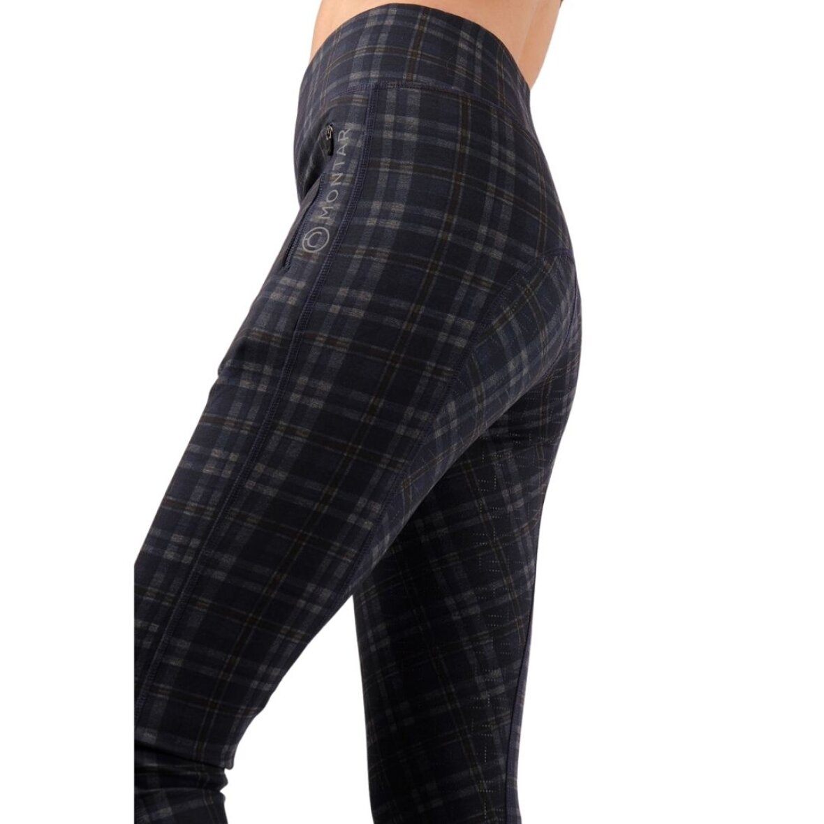 Strækbare ridetights med fuld silikone grip fra Montar. De er med høj talje og syet i et blødt og behageligt materiale i et eksklusivt ternet design. Den høje talje giver god støtte under ridning og en god komfort. Disse ridetights er åndbare og med en lynlås lomme på siden til din telefon. Tone i tone Montar logo på siden.