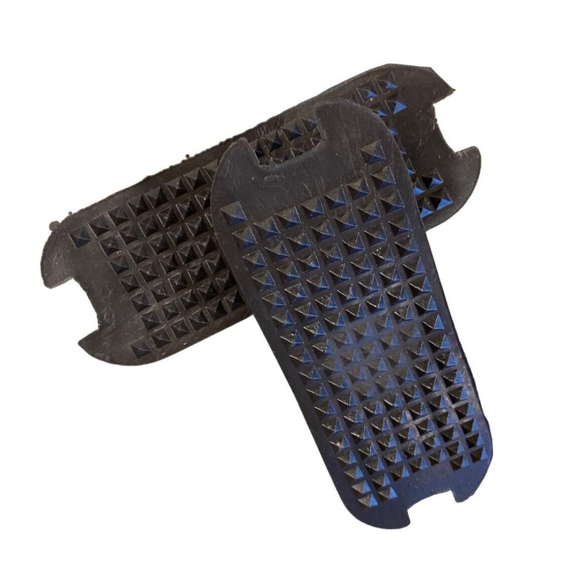 Sorte gummi indlæg til sikkerhedsstigbøjler, findes i to størrelser og sælges i pakke med to stk.