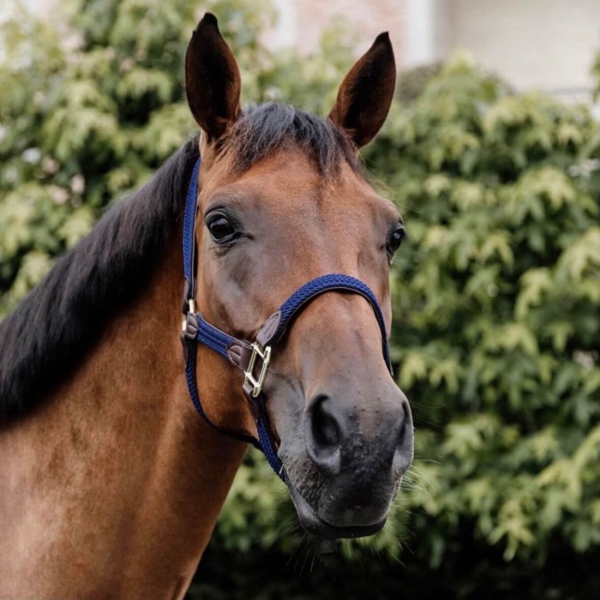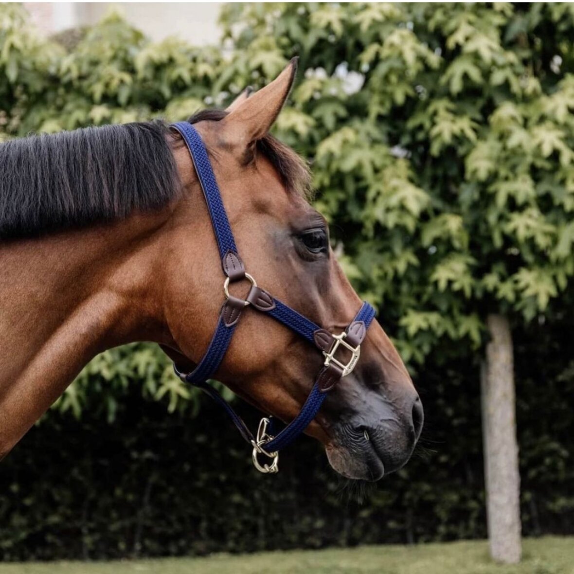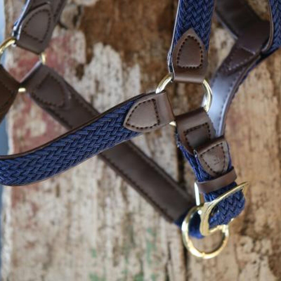 Lækker grime fra Kentucky Horsewear i kunstlæder (100% dyrevenlig) med flettet nylon design udenpå. Den er let at vedligeholde og kunstlæder absorberer ikke vand eller snavs, knækker ikke eller ændrer farve. Det er mere fleksibelt end ægte læder og holder sig derfor meget pænere. Grimen er justerbar to steder og har guldfarvede spænder.