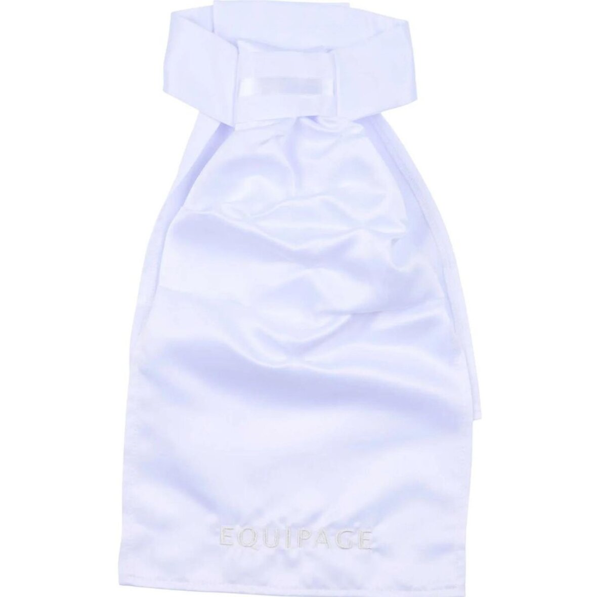 Equipage Harriet er en flot helt hvid plastron i satin. Plastronen er bundet og samles i nakken med en velcro. Kan bruges som den er eller man kan dekorere den med en fin broche.