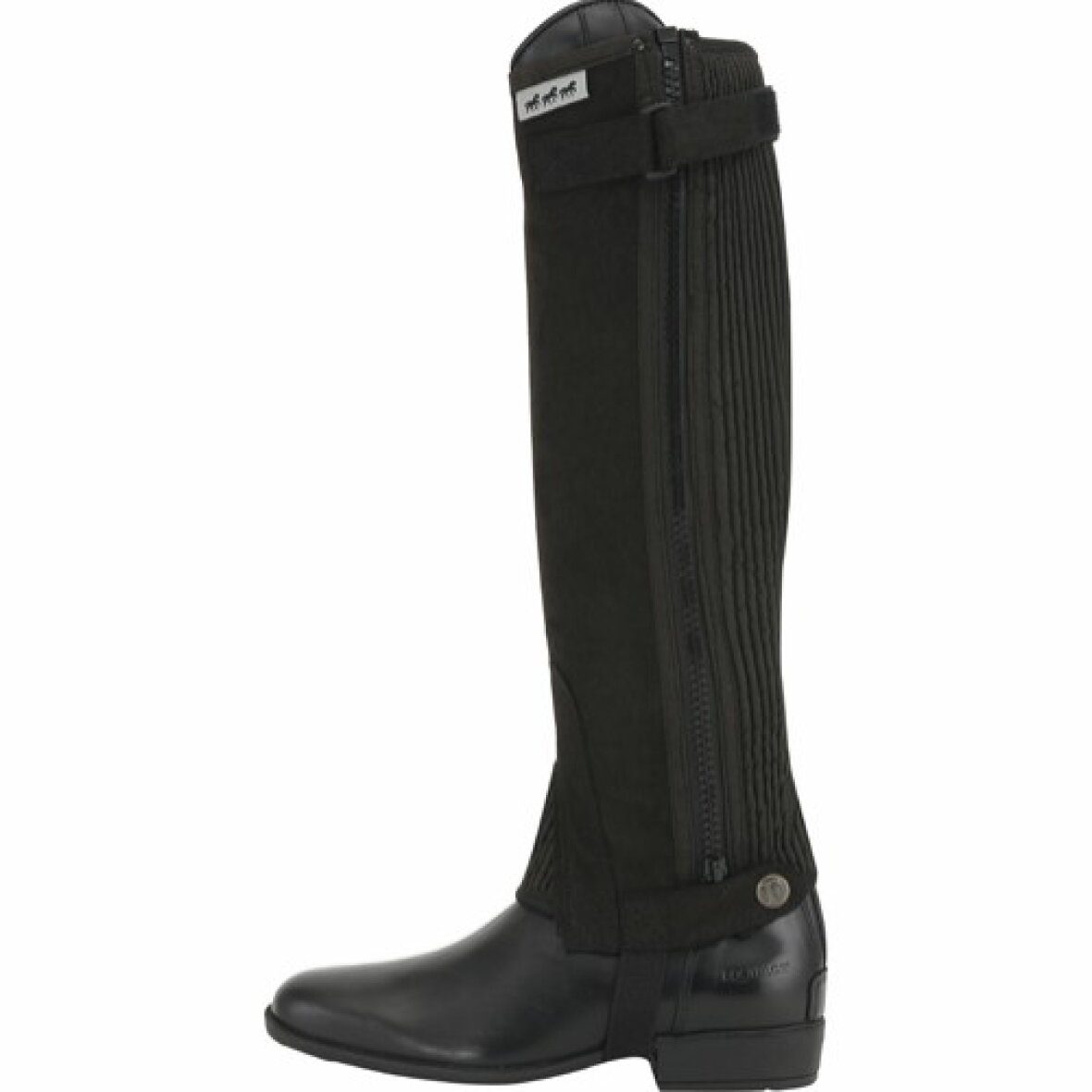 Leggings lavet i et slidstærkt naturlig Amara-materiale der ligner naturligt ruskind. De er åndbare og lavet i et stærkt materiale. De elastiske ribpaneler på siden giver stretch og komfort. Der er påsyet en strop under foden, der er med til at holde dem på plads. Forstærket elastisk strop under foden som holder dem på plads. For oven er der en knappet rem for enden af lynlåsen.