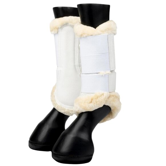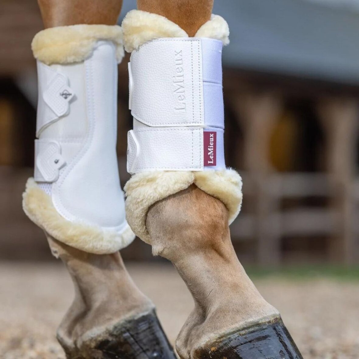 Fleece mesh gamacher fra LeMieux. Gamacherne er letvægts, perforeret 3D-mesh som fremmer luftstrømmen inde i gamachen og holder benene kølige. Kantet med super blød imiteret lammeskind, for at forhindre gnidning og maksimere komforten. Det hårde, holdbare PU-læder ydre giver beskyttelse mod stød. Stærke elastik stropper gør det hurtigt og nemt at fastgøre gamacherne.
