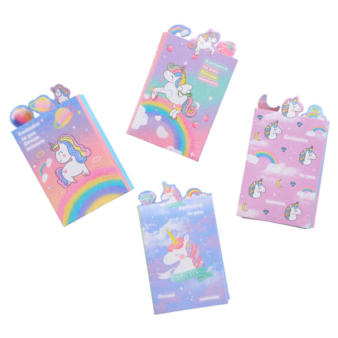 Små søde notesblokke til børn med forskellige motiver. Indeni er der mange små papirblokke med forskellige unicorn motiver.
