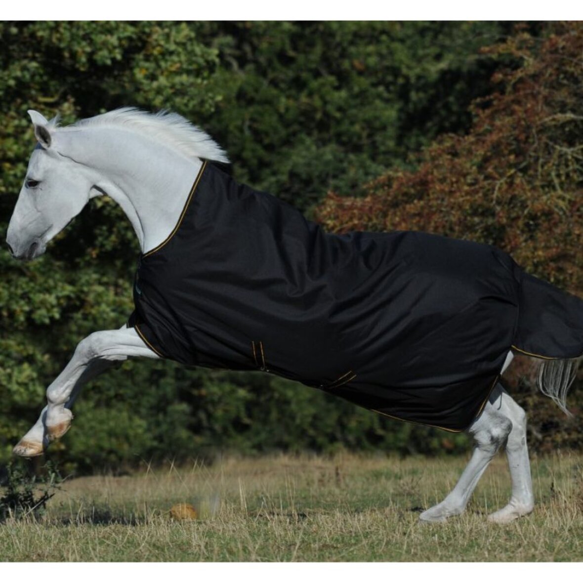 Irish overgangsdækken med 50 g fyld. Dækkenet er vandtæt og åndbart med en 1200D rip-stop yderside. Læg ved skulder så hesten får masser af bevægelsesfrihed. Dækkenet er snap-lock magnetisk lukning, justerbare krydsgjorde under maven, haleflap med snor til at dækkenet på plads.