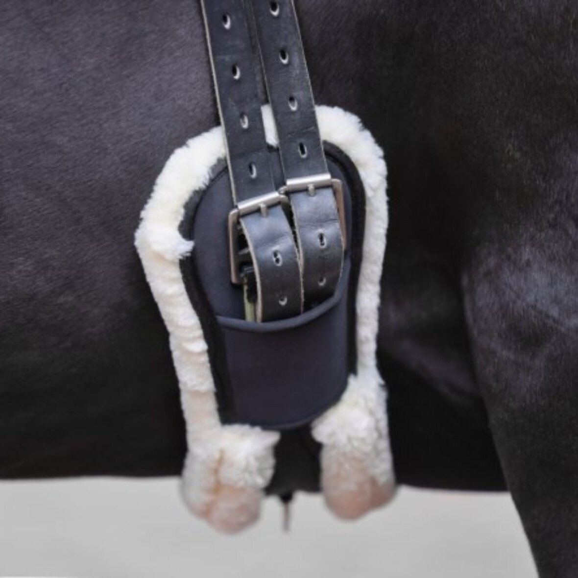 Anatomisk dressurgjord med imiteret lammeskind fra Covalliero. Den imiteret lammeskind giver beskyttelse til hesten og forhindre tryksår. Gjorden er med rullespænder, som gør det nemt at spænde gjorden. D-ring for nemt at påsætte hjælpetøjler.