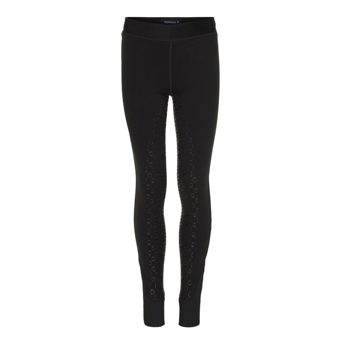 Varme vinter børne ridetights fra Equipage. Disse tights er med fuld silikone grip i logo mønster og med bred elastisk linning som giver god støtte. Tights'ene er med børstet inderside, så du nemt kan holde varmen på de kolde dage.