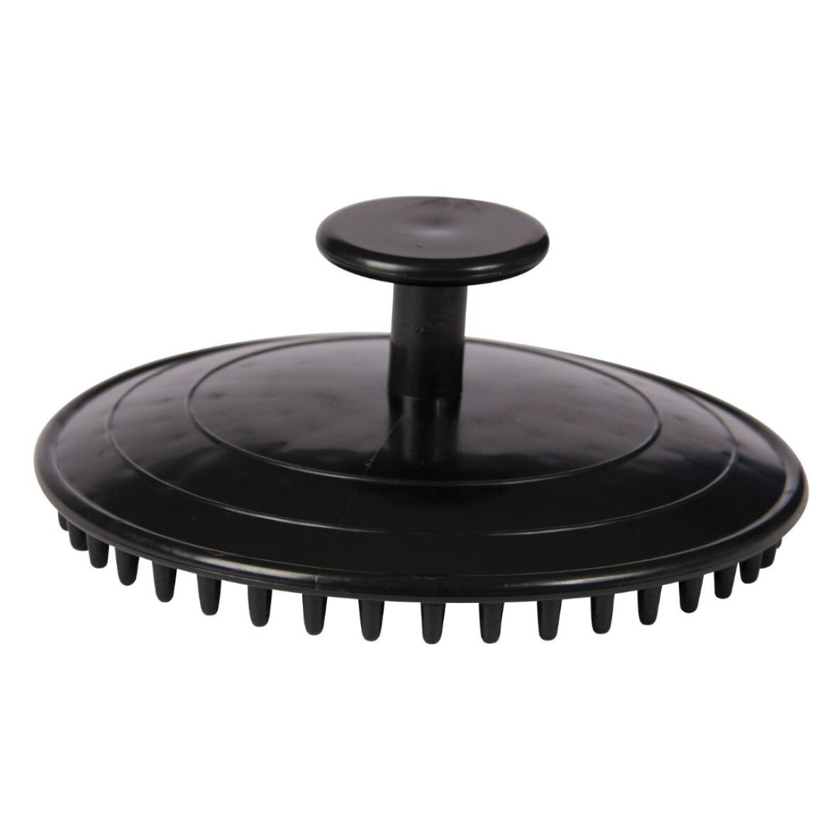 Plastik massagestrigle fra Horseguard. Striglen giver hesten en let massage og fjerner effektivt løse hår fra hestens pels.