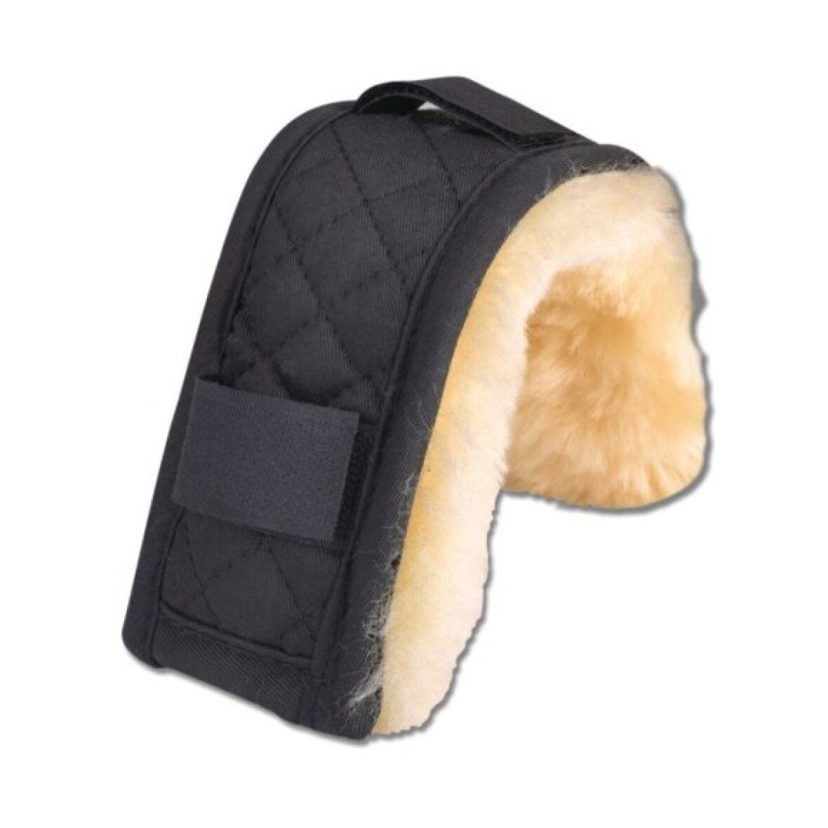 For eksempel sikrer ægte lammeskinds naturlige stabilitet ideelle trykfordeling og stødabsorberende egenskaber, hvilket forhindrer trykpunkter og gnidning. Desuden fremmer materialets egenskaber luftcirkulationen og sikrer dermed en naturlig temperaturkontrol. Denne lammeskindsbeskytter lukkes med velcro.