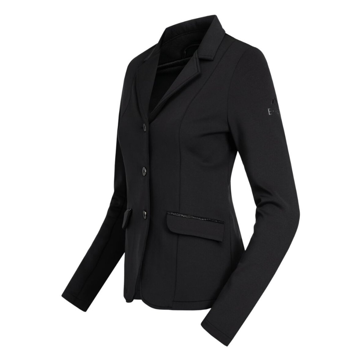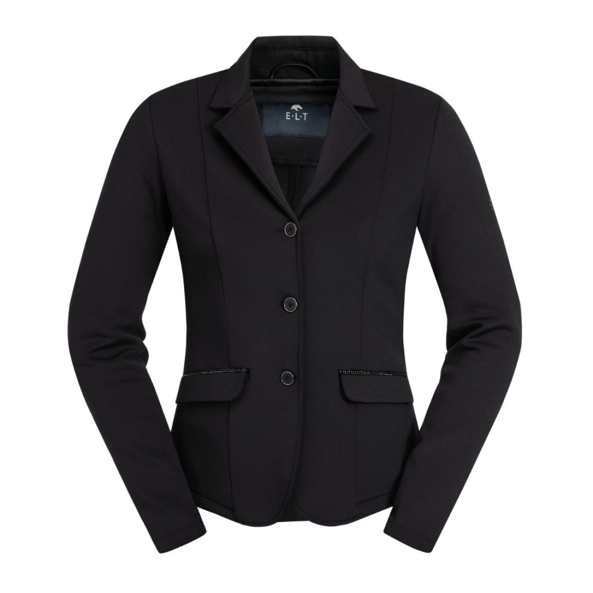 Figursyet børne stævnejakke fra ELT. Stævnejakken er fremstillet i ånd- og strækbart materiale som giver en god bevægelsesfrihed. Den er med 2 lommer i fronten med rhinsten ovenover, samt 2 slidser bagpå. Stævnejakken lukkes med knapper. ELT tone i tone grip logo på det ene ærme.