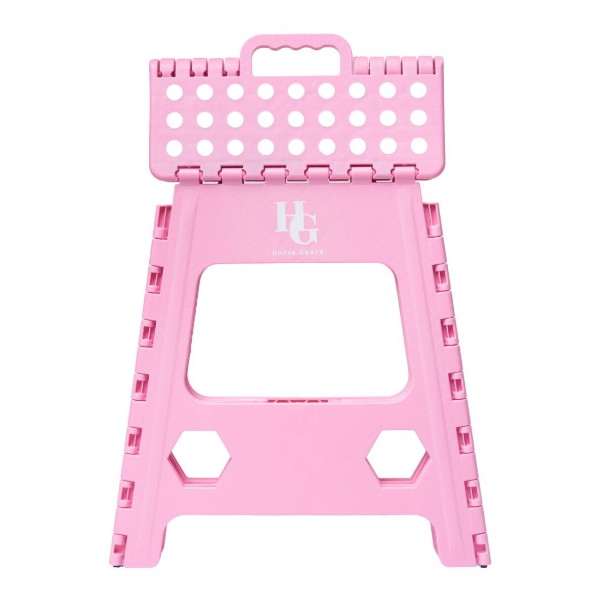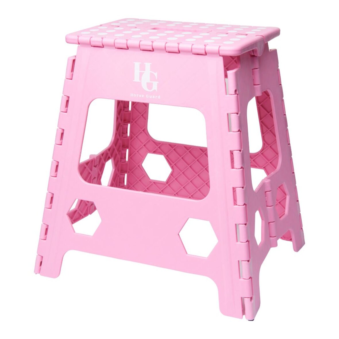 Sammenklappelig skammel fra HorseGuard. Fremstillet i robust plast i den fineste lyserøde farve. Skamlen fylder ingen ting når den er slået sammen og derfor nem at medbringe.