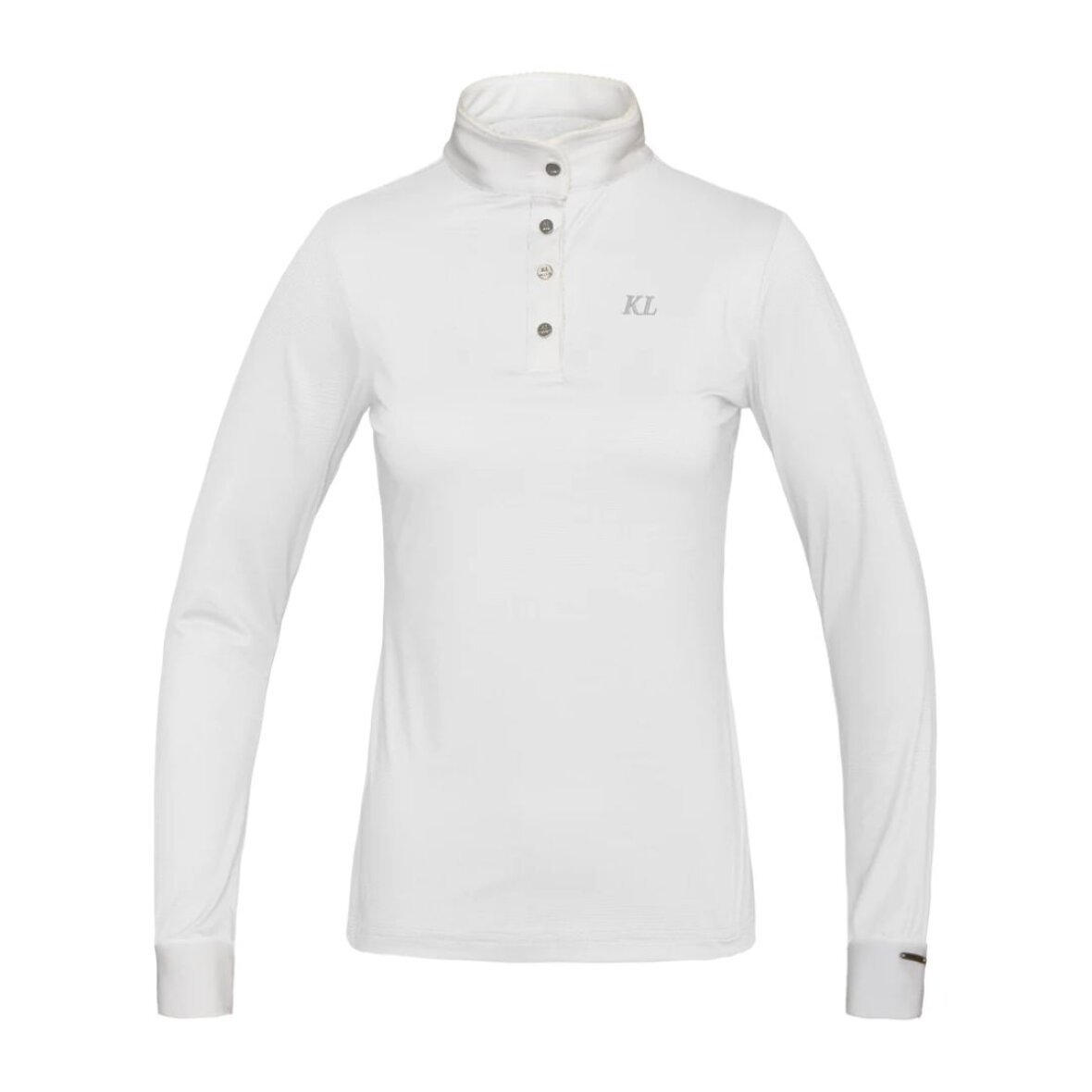 Lang ærmet stævnebluse fra Kingsland. Den er fremstillet i teknisk letvægtsmateriale med høj krave og kort lukning i fronten. Broderet Kingsland logo på brystet og på kraven. Krystal knapper på manchetterne.