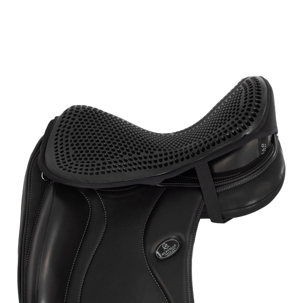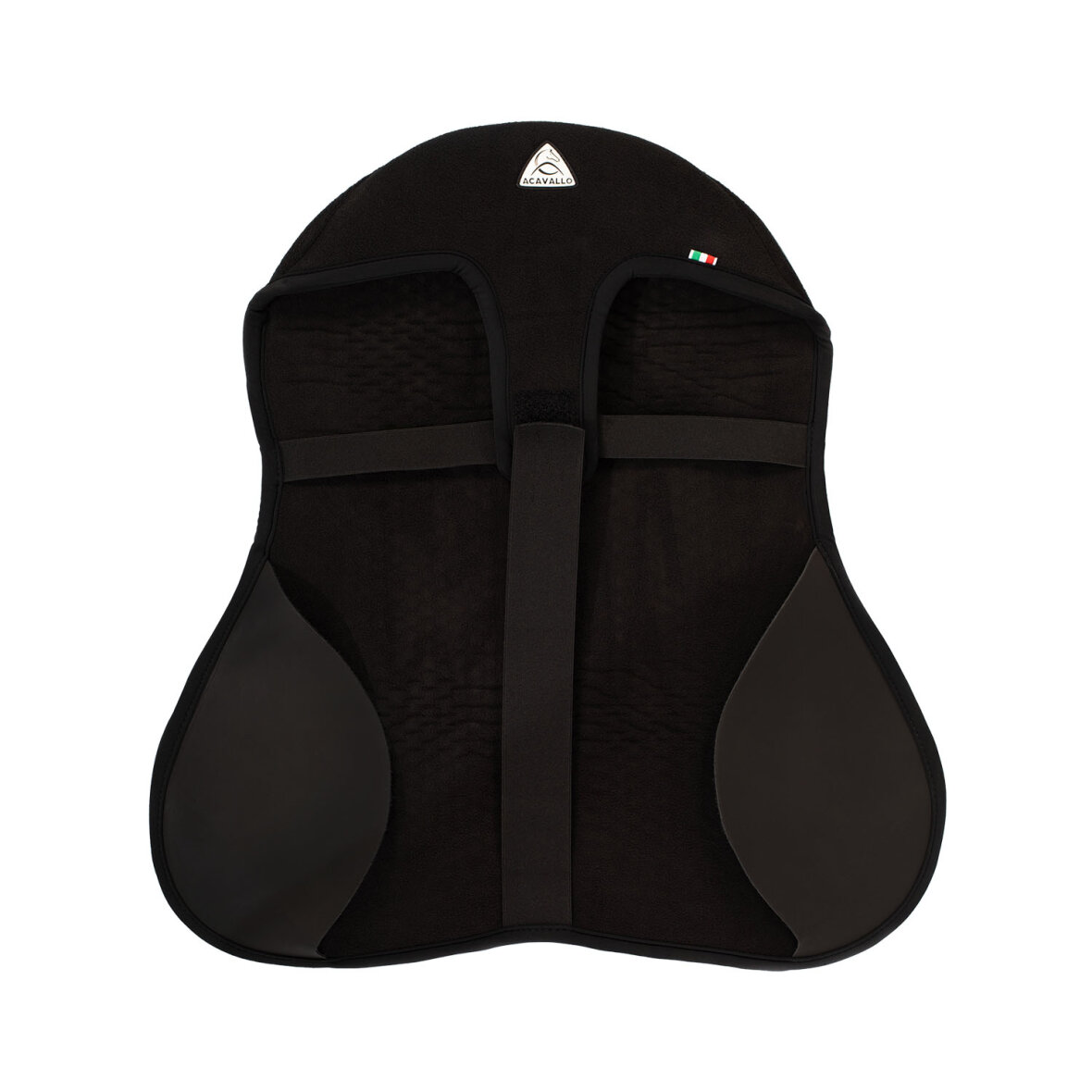 Lækker sadleovertræk fra Acavallo, med 20 mm stødabsorberende og trykfordelene gel. Hjælper rytteren mod stød i ryggen samt. Overtrækket er nemt at montere og passer til alle dressur sadler.