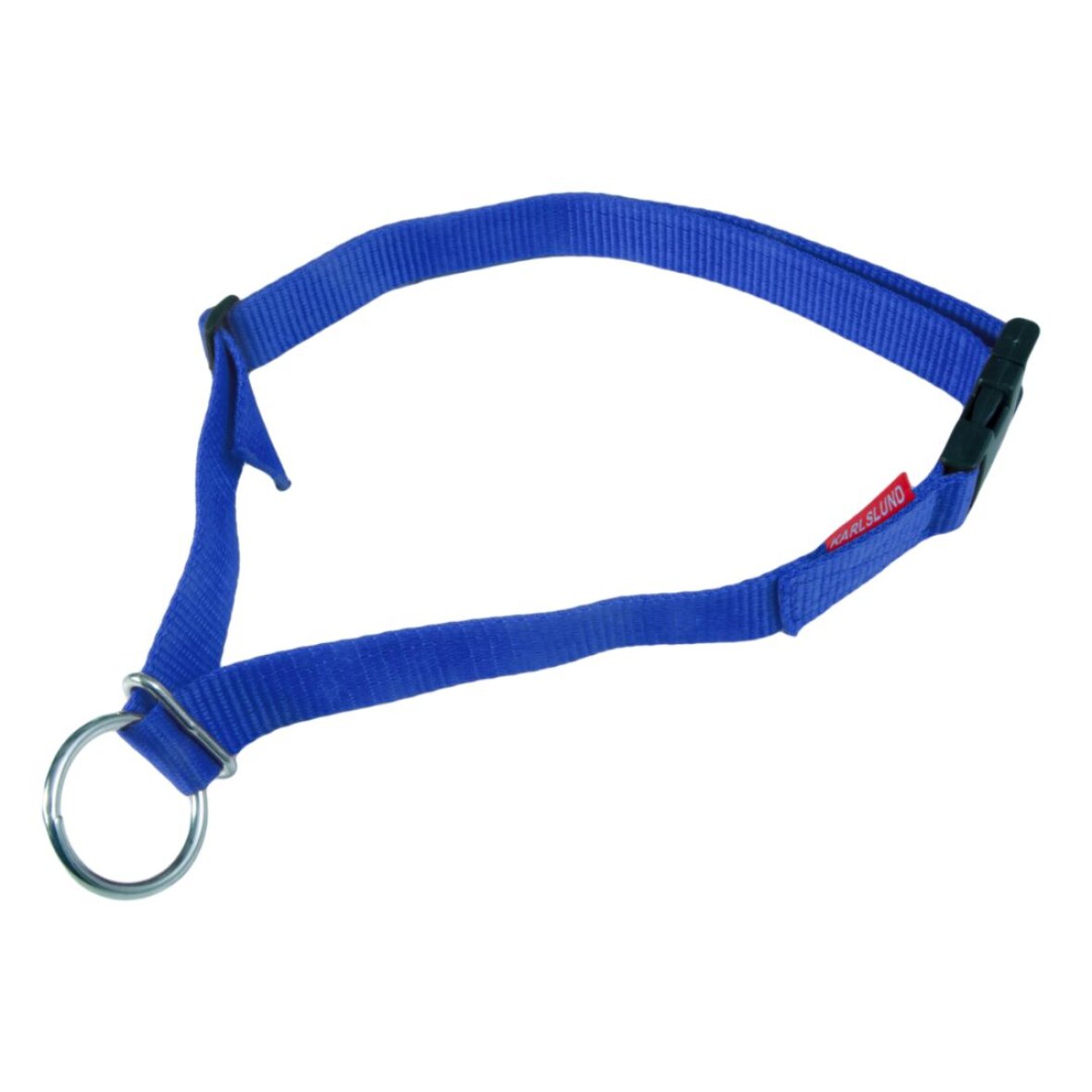 Simpel halsrem i nylon, med sikkerhedsspænde i plastik. Karlslund logo. God til f.eks. fodring og lignende.