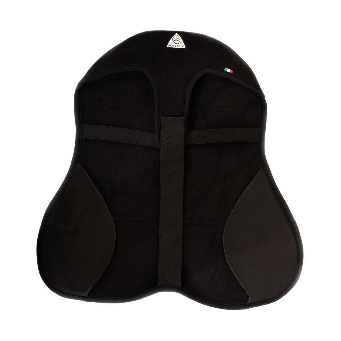 Lækker sadleovertræk fra Acavallo, med 20 mm stødabsorberende og trykfordelene gel. Hjælper rytteren mod stød i ryggen samt overtrækket er med hul til halebenet. Overtrækket er nemt at montere og passer til alle dressur sadler.