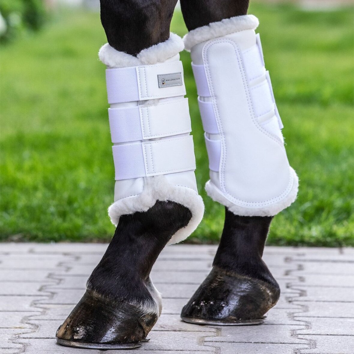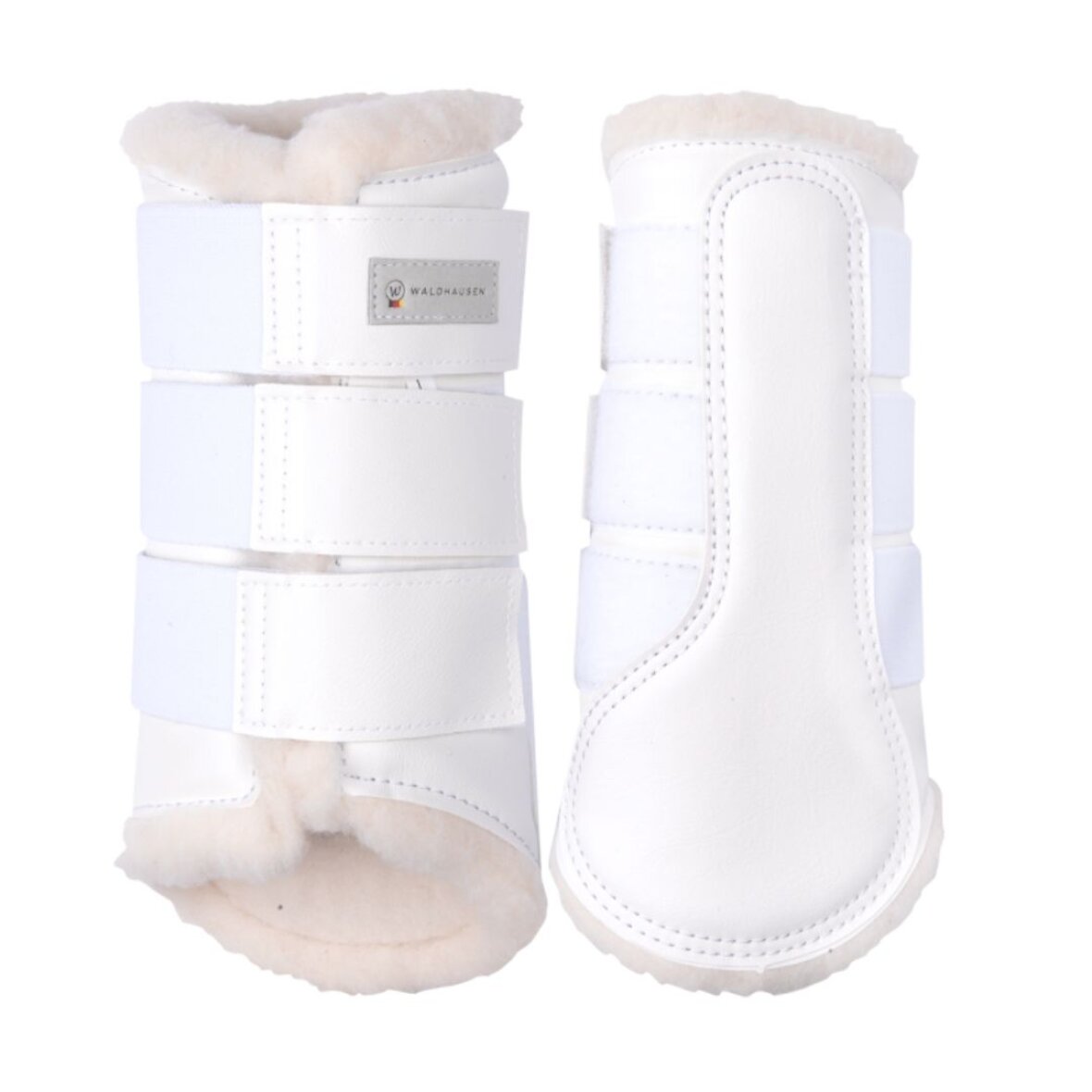 Dressur gamacher med imiteret lammeskind, for at forhindre gnidning og maksimere komforten. Det hårde, holdbare PU-læder ydre giver beskyttelse mod stød. Stærke elastik stropper gør det hurtigt og nemt at fastgøre gamacherne.