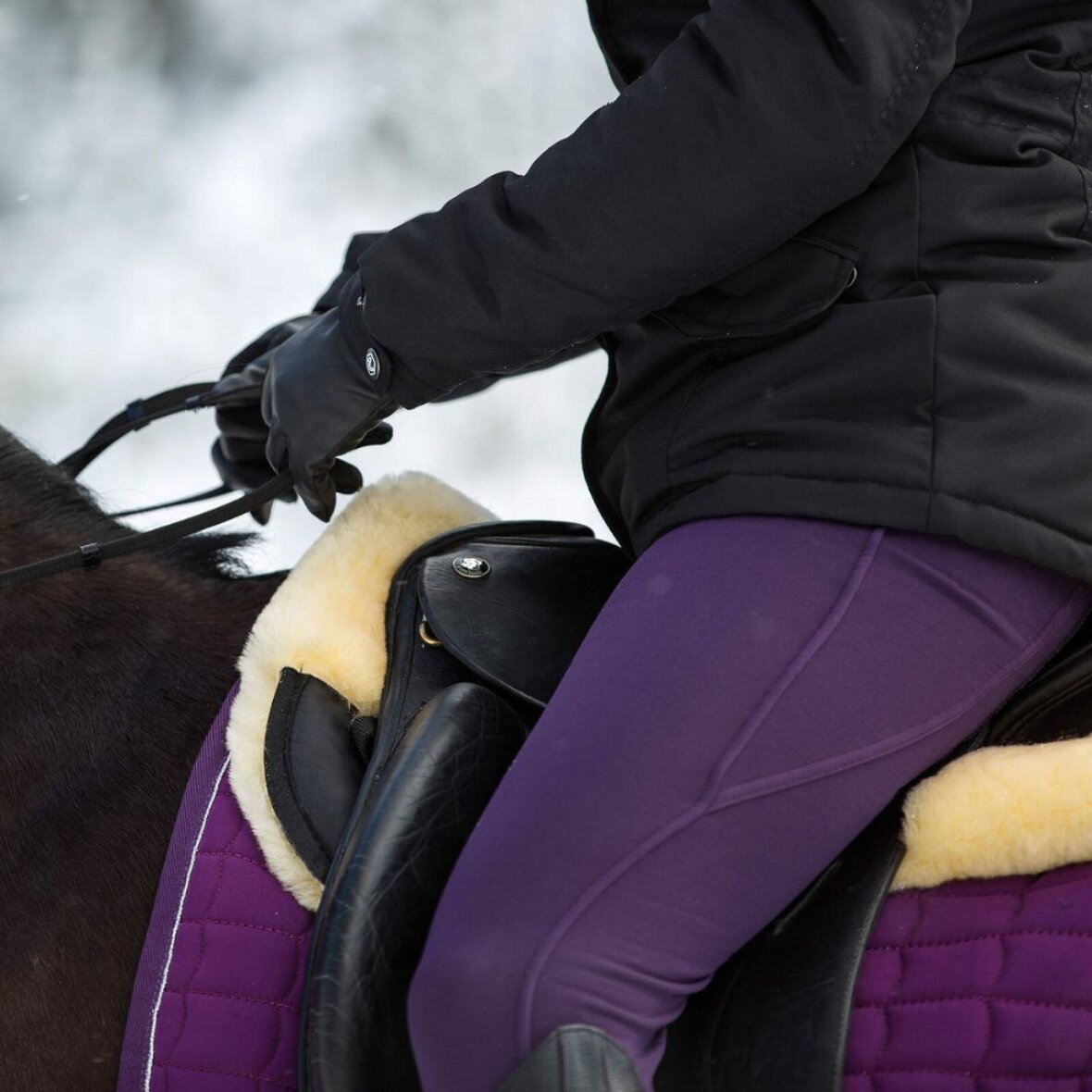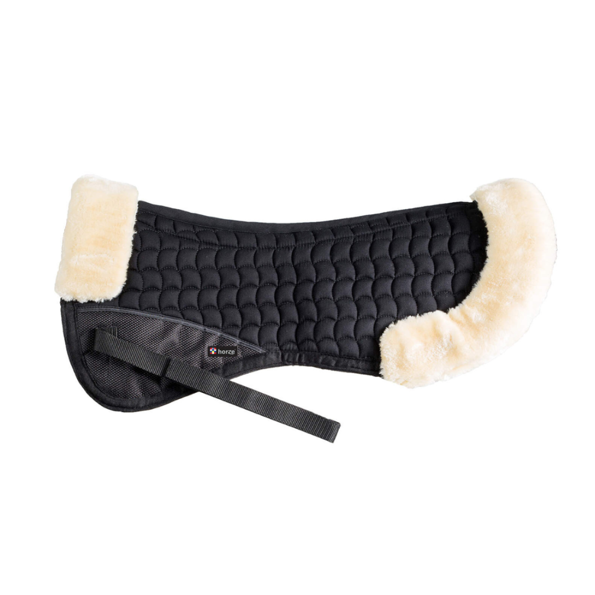 Pad med imiteret lammeskind fra Horze. Denne pad er stødabsorberende og fjerner trykpunkter og gør at din sadel passer bedre og sikrer dermed en behagelig tur for dig og din hest. Den er åndbar og fastgøres med velcrostropper til sadlen.