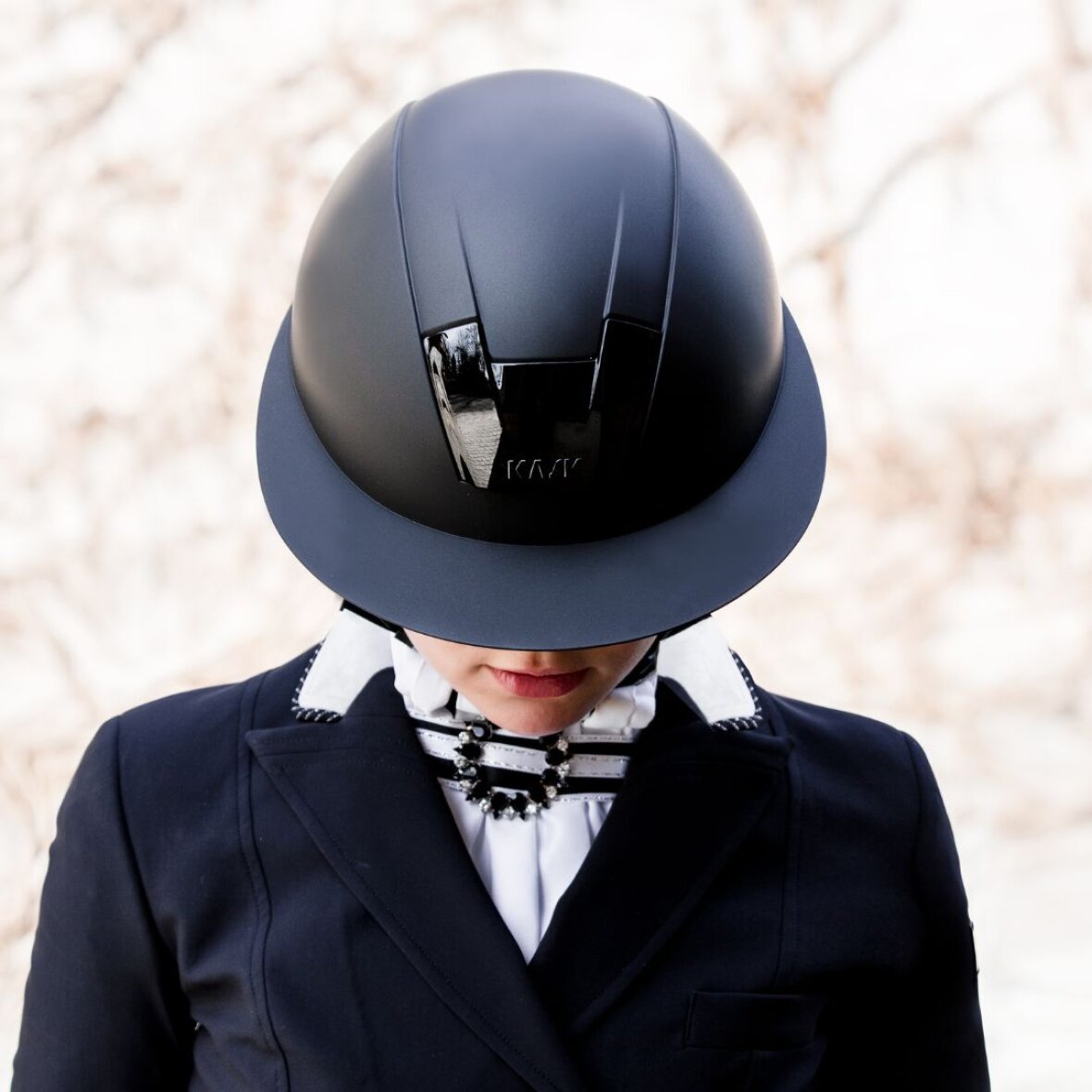 Kooki Lady ridehjelmen fra KASK i sort matt med bred skygge. Kooki Lady består af 2 skaller, den nederste i EPS og termoformet PC og den øverste i ABS, med sprøjtestøbt system. Den indvendige polstring er fremstillet af hydrofilt stof, som er åndbart og antibakteriel og er allerede udstyret med integreret fit-system. For- og bagventilation er sikret, hvilket sikrer hurtigtørring.