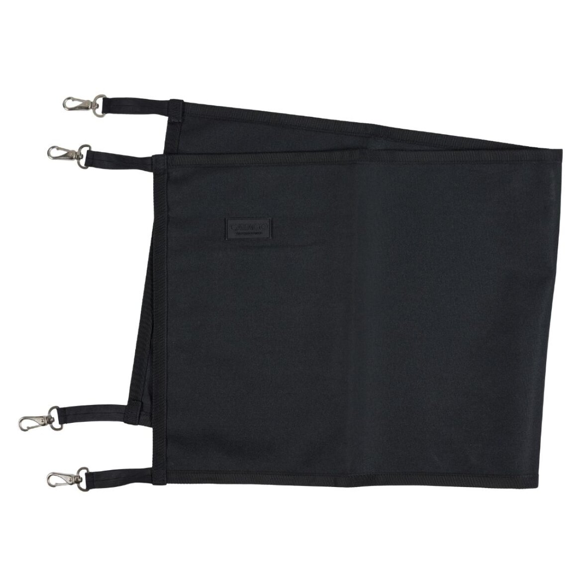 Klassisk boks forhæng fra Catago. Dette boks forhæng er fremstillet i slidtstærkt materiale som samtidig er nemt at rengøre. Det spændes fast med karabiner og er derfor hurtig at opsætte og derfor oplagt at tag med til stævner. Gummi patch med Catago logo i det ene hjørne.
