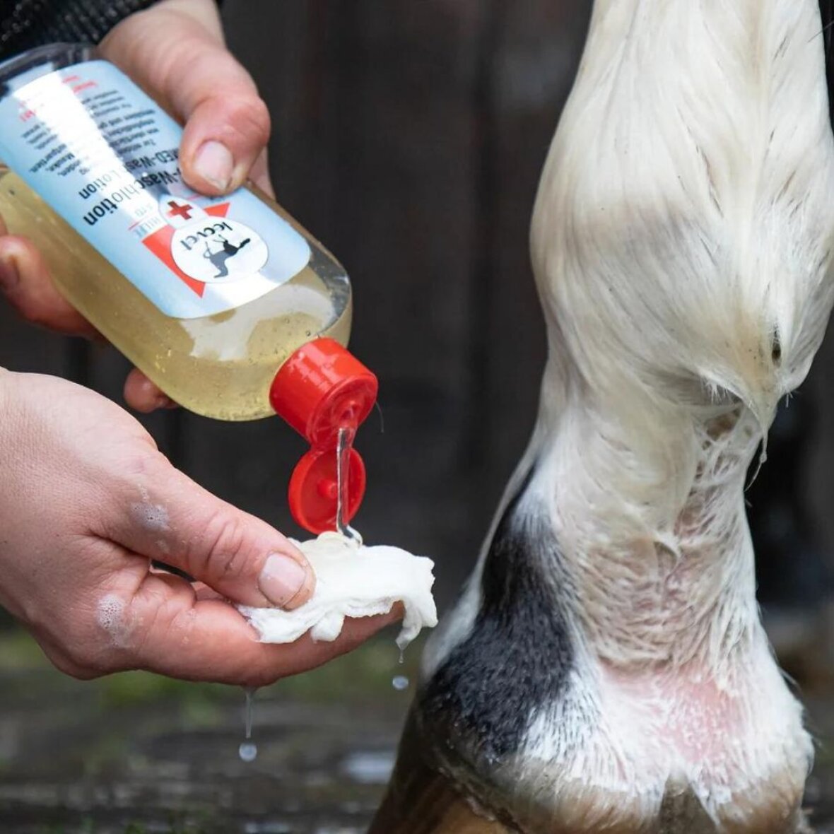 MED-Wash er en hesteshampoo fra Leovet som er yderst velegnet til rensning af overfladiske sår. Shampooen er parfumefri, PH neutral og fri for æteriske olier. Formlen giver skånsom rengøring med ekstra milde og sæbefrie overfladeaktive stoffer. Også velegnet til allergikere. Shampooen understøtter sårheling og regenerering ved at fjerne snavs og aflejringer.