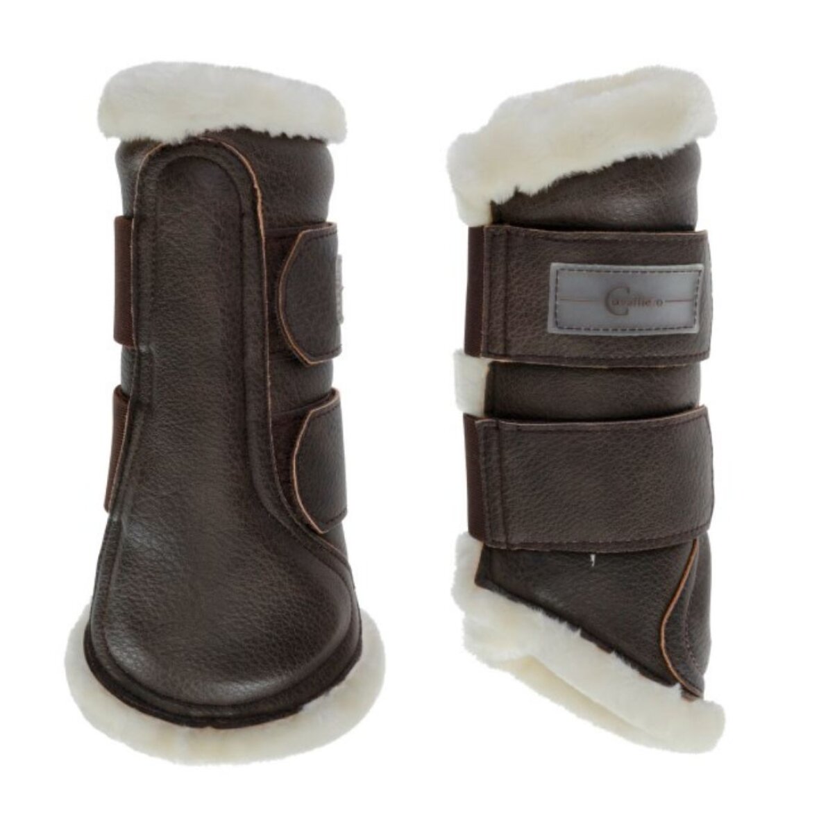 Dressur gamacher med lam fra Covalliero. De er fremstillet i syntetisk PU-læder med imiteret lammenskind indvendig. Kraftig elastik og velcro lukning gør dem hurtige at lægge på. Gamacherne er gummi patch med logo på fronten. De sælges i pakke med 2 stk.