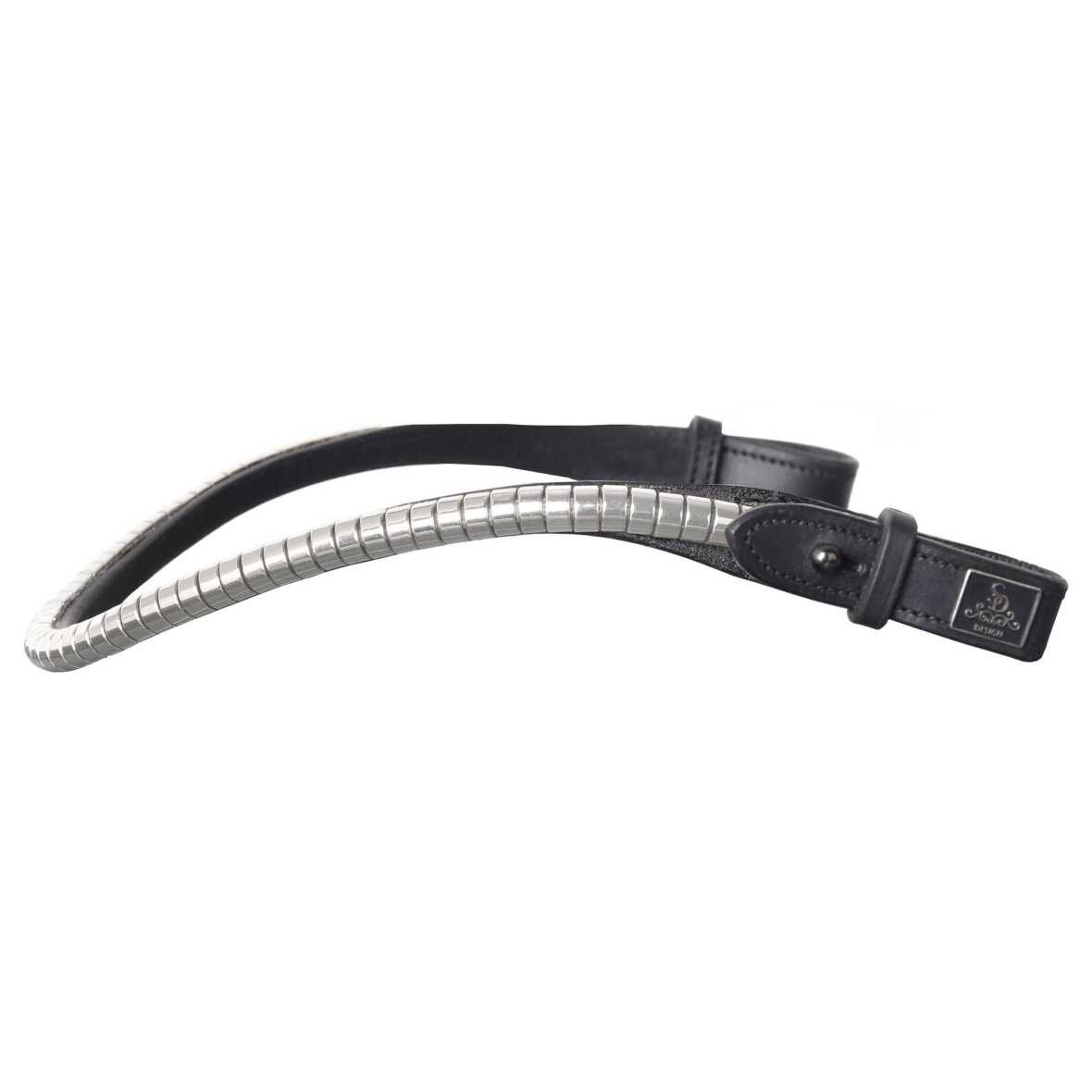 Veneziano pandebånd fra SD Design. Det er med en smal række nitter og så buer det helt fantastisk smukt og har spænde lukning på siden som gør det hurtig og nemt at montere. Pandebåndet kommer i en SD æske med en gratis pudseklud, så du altid kan pudse nitterne op, så de glimter som nye.