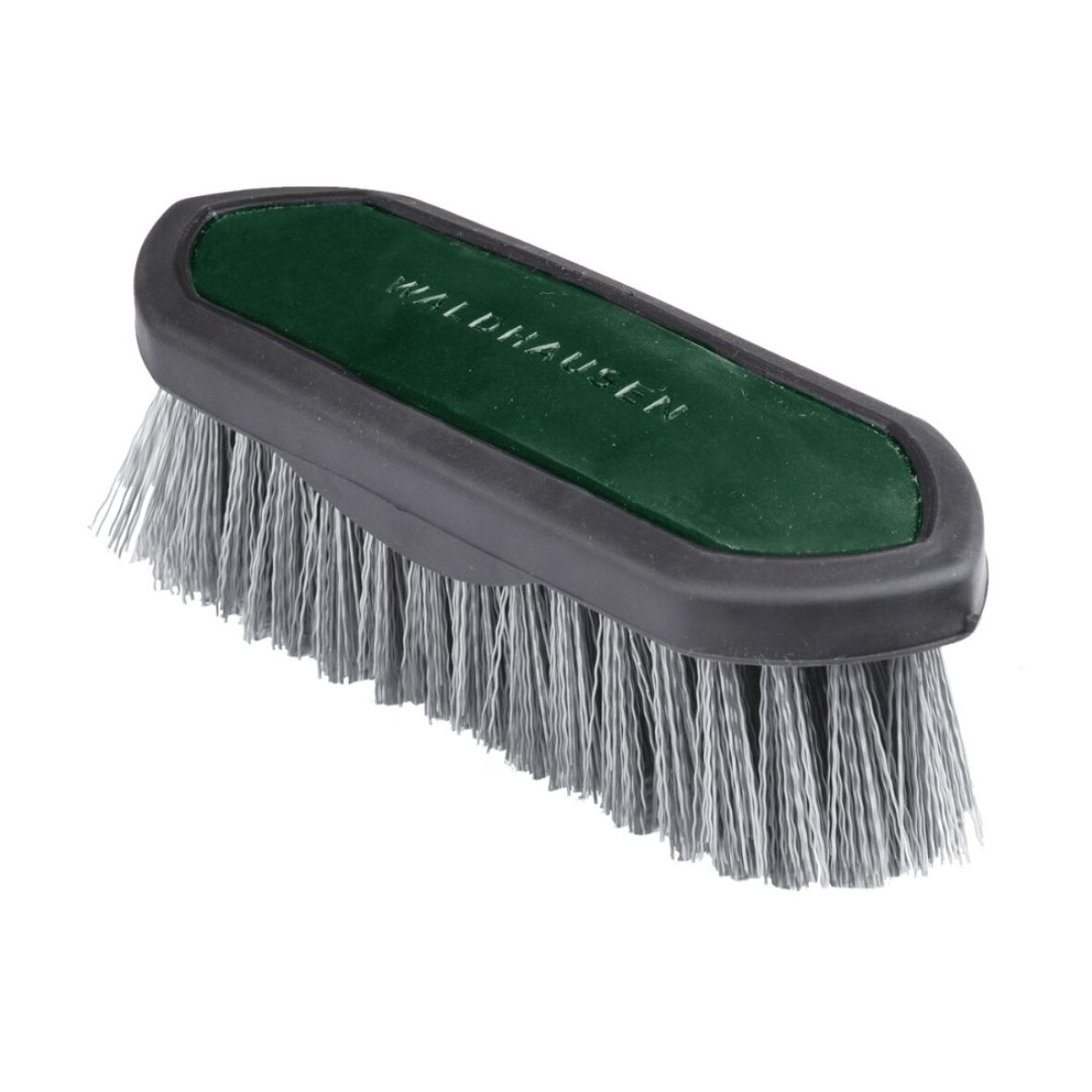 Børste med stive hår fra Waldhausen. Denne børste er med syntetiske børster og har læderlook ryg med logo.