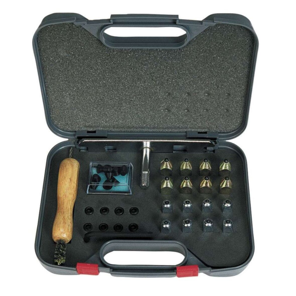 Komplet mordax sæt fra Horseguard. Sættet kommer i en plast æske som er nemt at tag med sig. Mordax sættet består af 4 sæt mordax. 3/8" bla. med tungsten i alt 16 stk mordax. 1 skruenøgle. 1 rensetap. 8 skrue-hulpropper med nøgle. 8 plastikpropper til at sætte i hullerne.