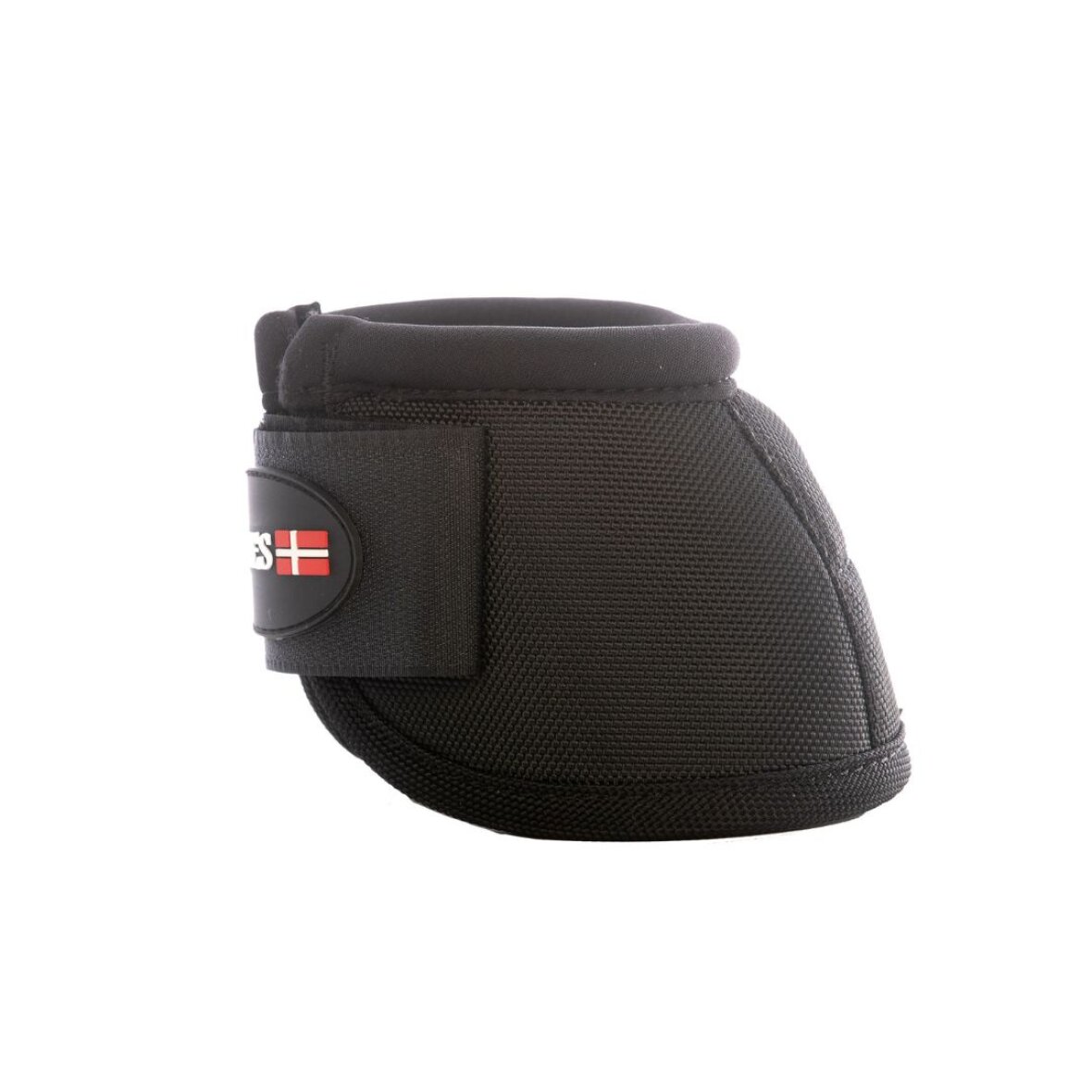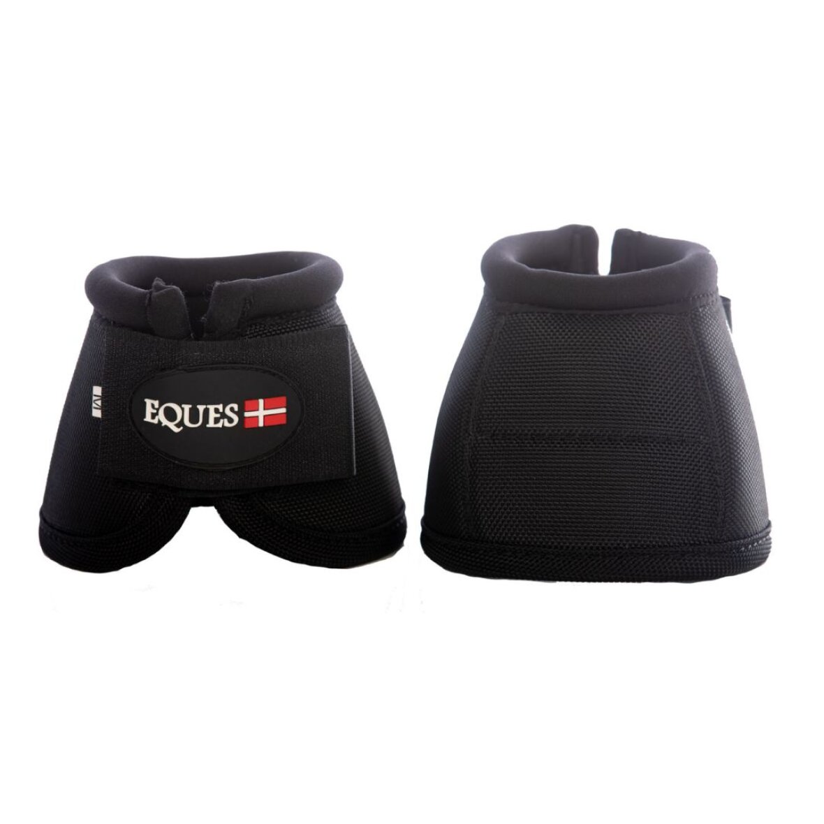 Beskyttelsesklokker i sort fra Eques. Disse klokker beskytter hesten hove og koder. De er fremstillet i slidstærkt materiale med kraftig nylon og neopren indvendig. Kraftig velcrolukning med Eques logo. Kile indvendig i klokken sikre at klokken bliver på plads og ikke drejer rundt på hoven.
