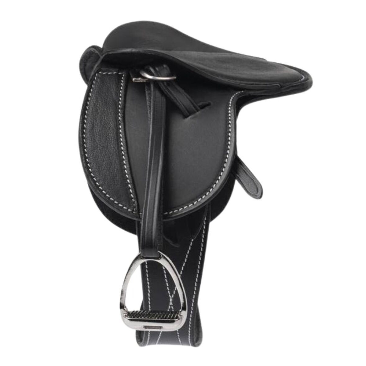 Sadle som passer til mini toy ponyerne fra LeMieux. Denne sadel er lavet i ægte læder og er med gjord, stigbøjler og stigremme. Den er med hvide syninger og metal spænder.