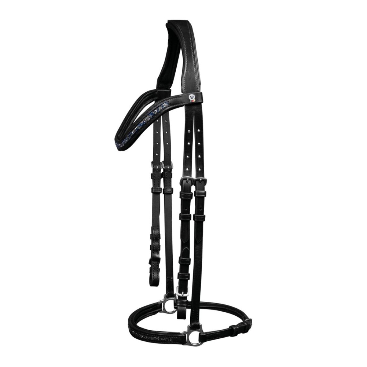 Anatomisk formet islænder trense fra Waldhausen. Denne trense er fremstillet med flotte blå/sølv rhinsten i pande- og næsebånd samt med foring i nakke- og næsebånd for at give god komfort.