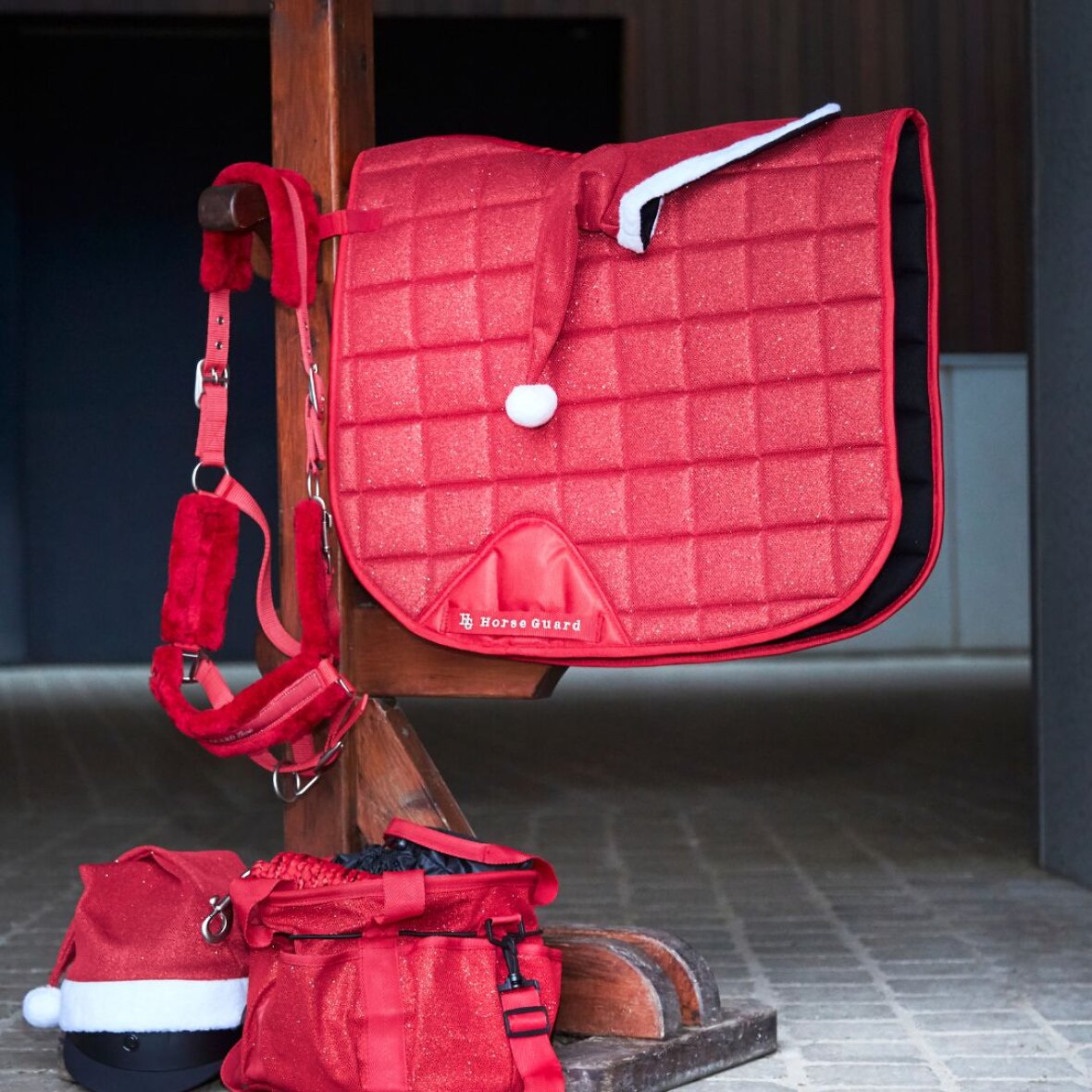 Elegant dressur underlag i mesh med meget glitter effekt. Underlaget er med cool-dry effekt på indersiden. Nylon gjordstropper med velcro til fastgørelse.