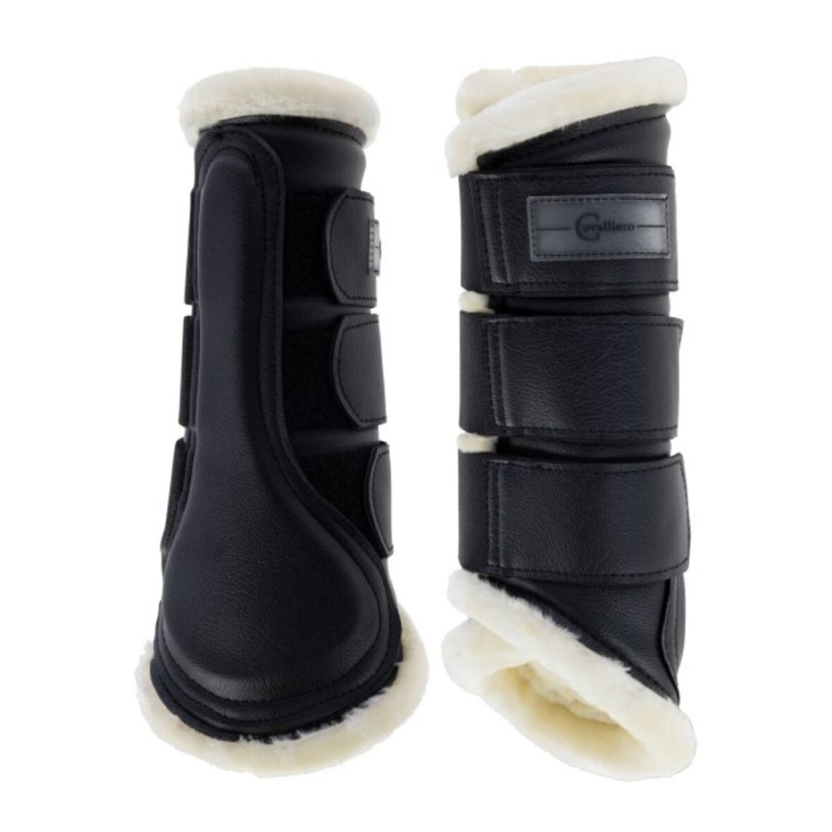Forbens gamacher med imiteret lammeskind. Disse gamacher er fremstillet i syntetisk læder og har elastik stropper med velcro som lukning. Gummi logo på fronten.